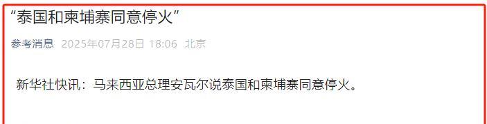 四天的柬泰冲突终于要结束了! 新华社快讯:马来西亚总理安瓦尔说泰国和柬埔寨同意停