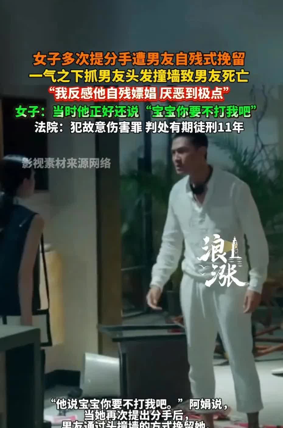 女子提分手遭男友多次自残式挽留 男友:宝宝你打我吧,男子嫖娼自残女友对其厌恶至极 女子一气之下抓住男友头发撞墙致男友死亡 法院:犯故意伤害罪获刑11年 这事儿想想就闹心。因男友嫖娼阿娟多次提分手,阿强就用自伤自残挽留,什么头撞墙、让阿娟划伤烫伤他。最后阿娟一气之下抓他头发撞墙,导致他死亡,这俩人都太恐怖了 谈个恋爱一个下大狱,一个丢掉性命 不行就分手想不通为什么会这样。