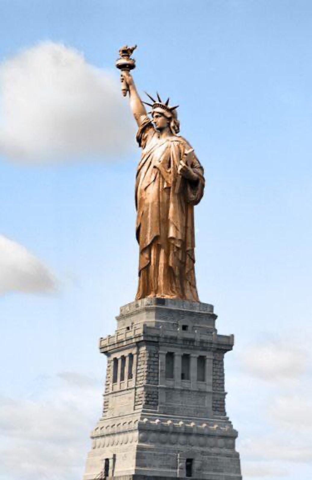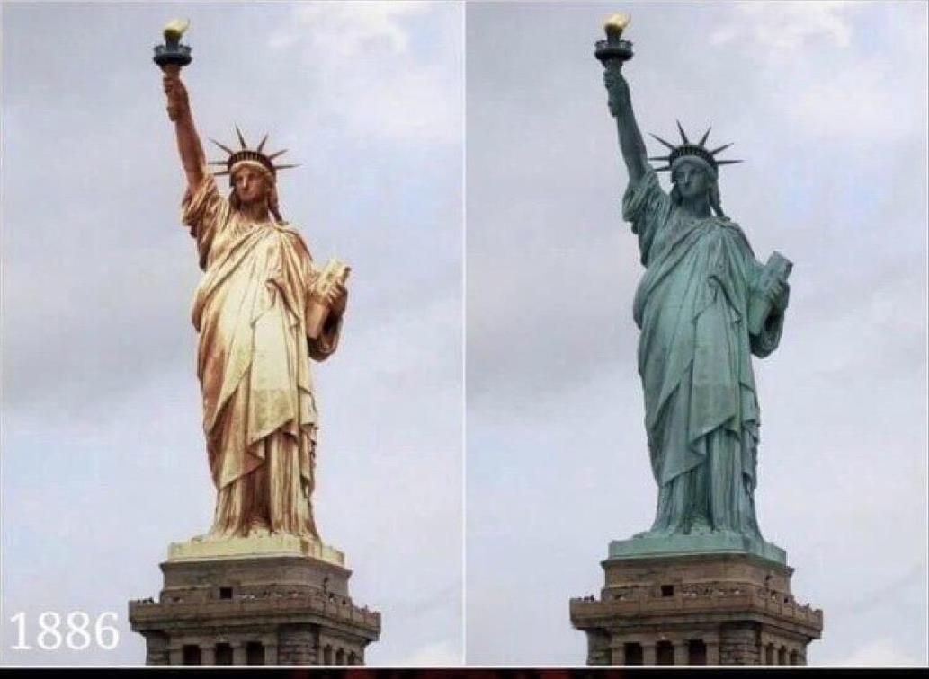 自由女神像并不总是绿色的。 其标志性的颜色称为铜绿,是铜在暴露于空气和湿气中自然