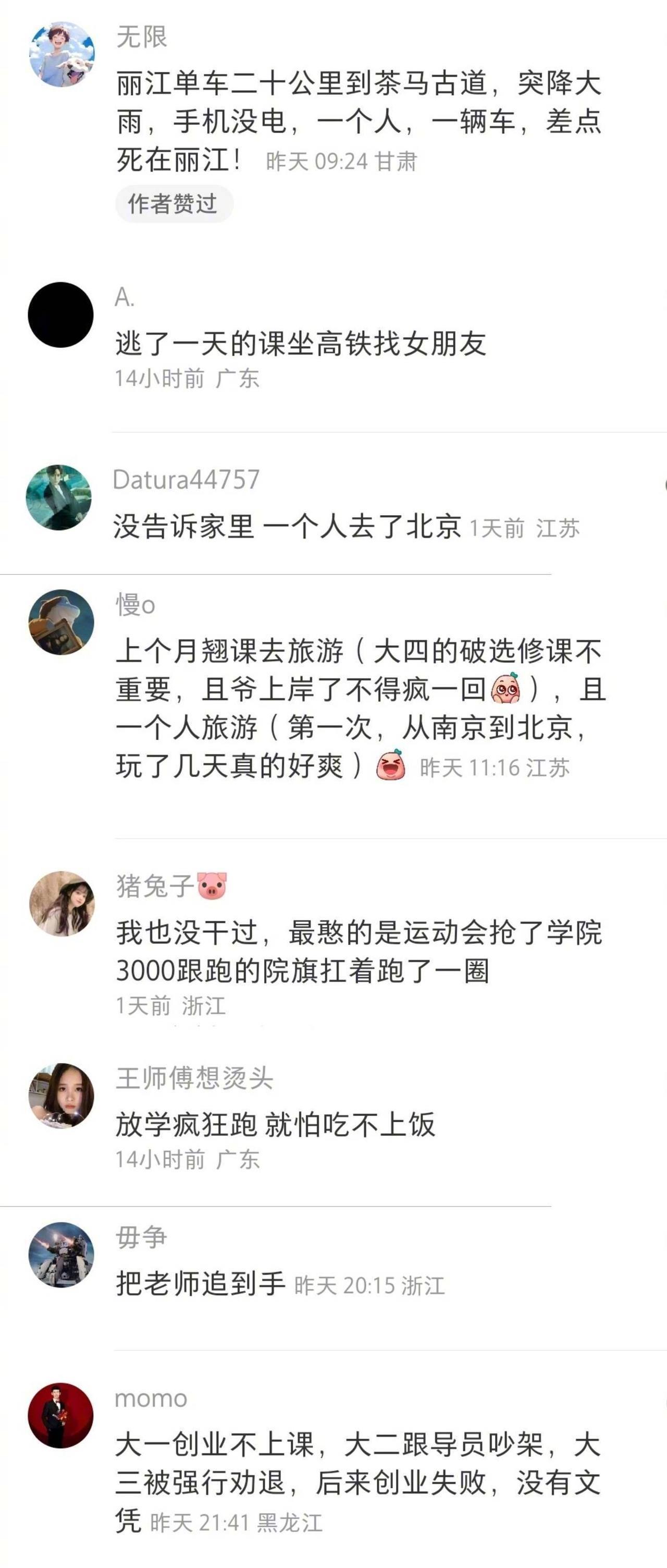 你大学里做过最疯狂的事情是什么,想感受一下大家热烈的青春。