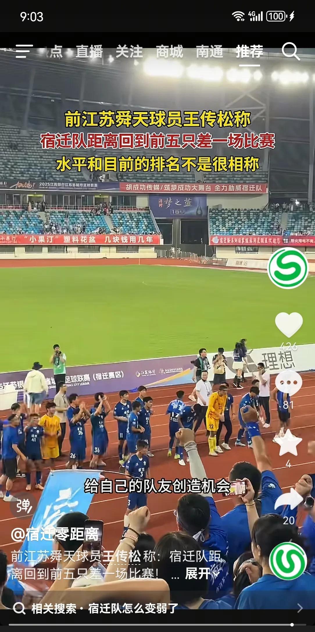 苏超宿迁队2025年8月3号19点30分对阵无锡队。前江苏舜天球员王传松说:“宿