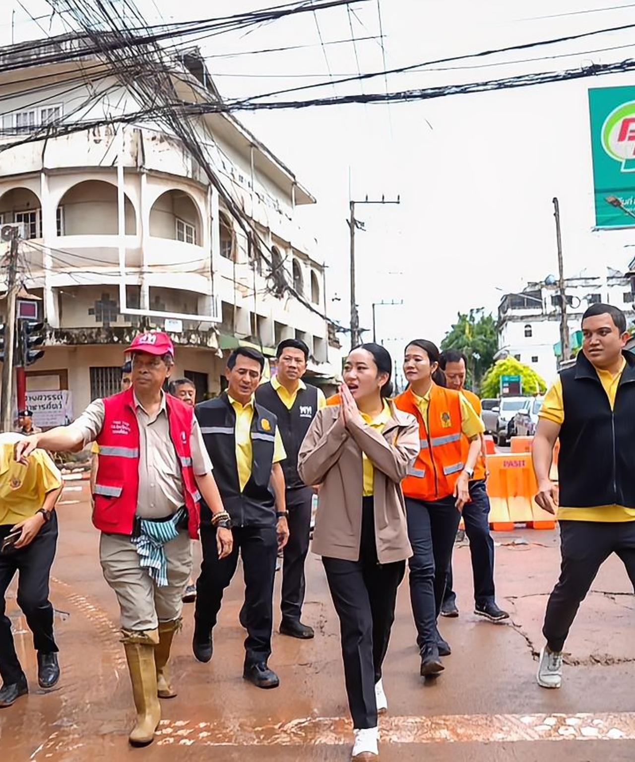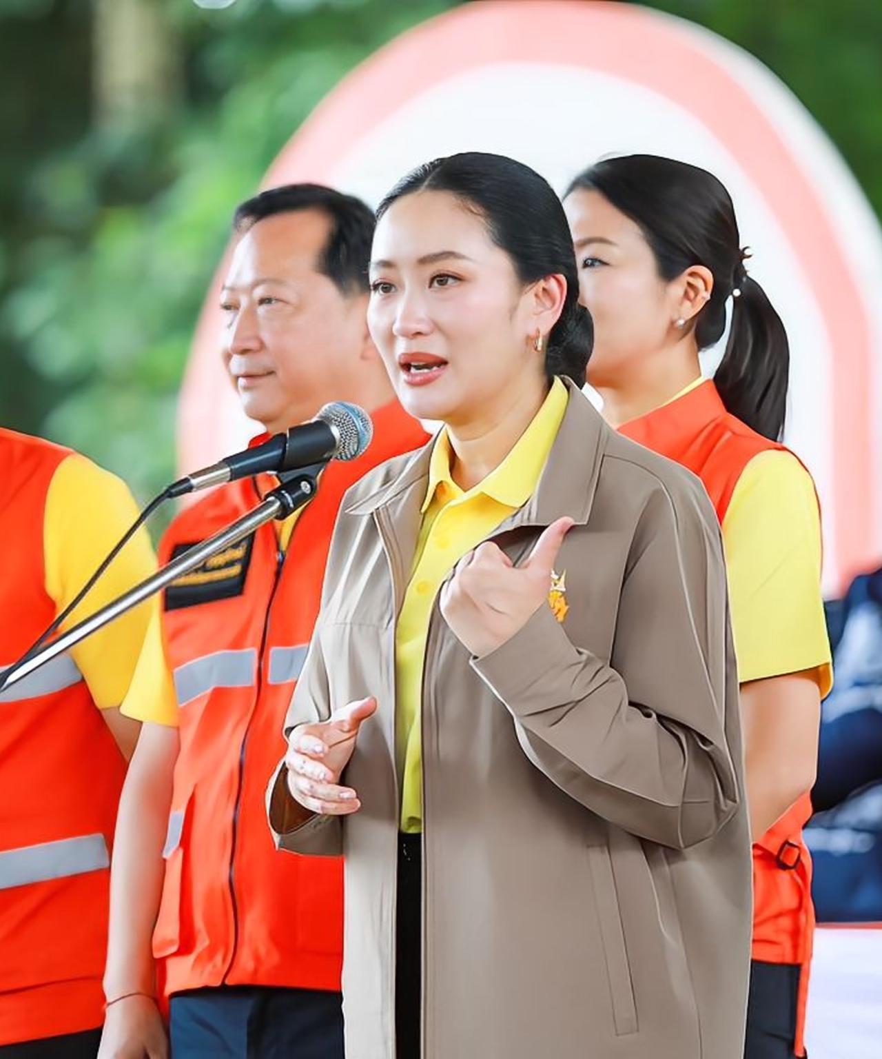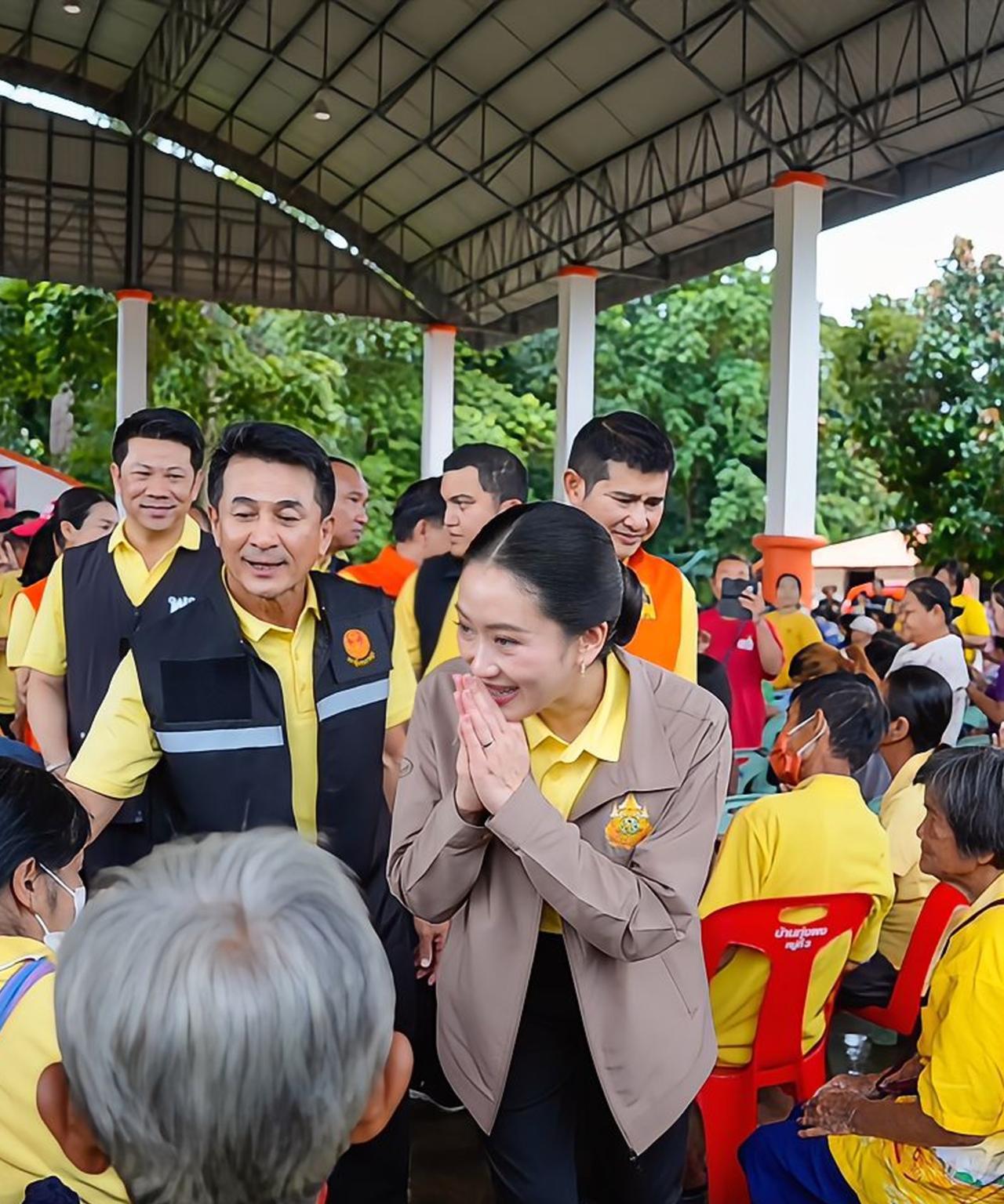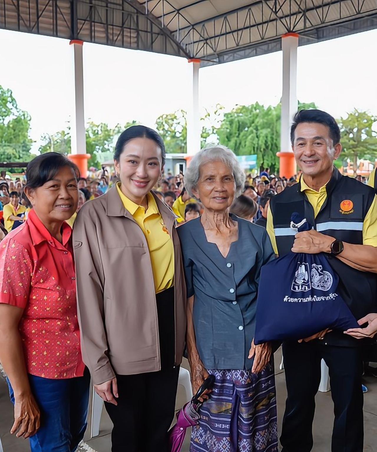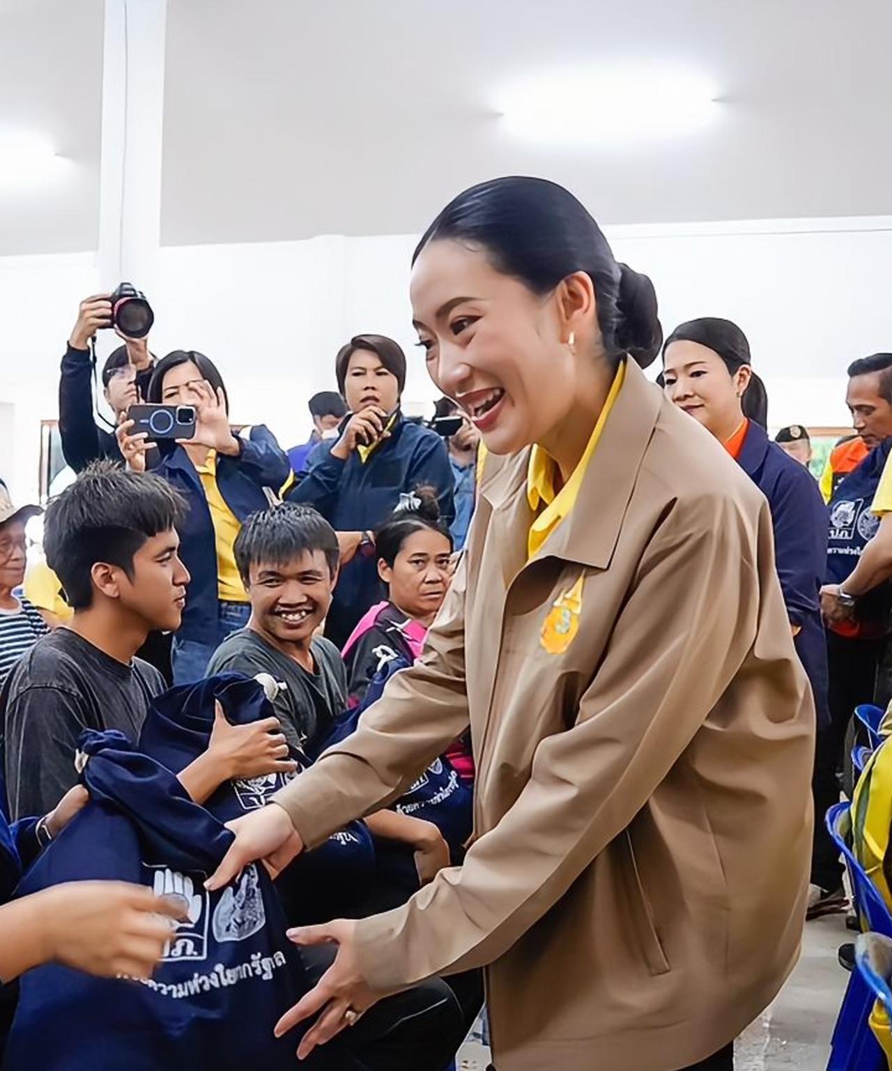 佩通坦访问灾区,素颜出镜依旧很美 2025年7月28日,泰国总理兼文化部长佩通坦携团队,前往南部省Wiang Sa区Na Leung街道6号村展开访问。