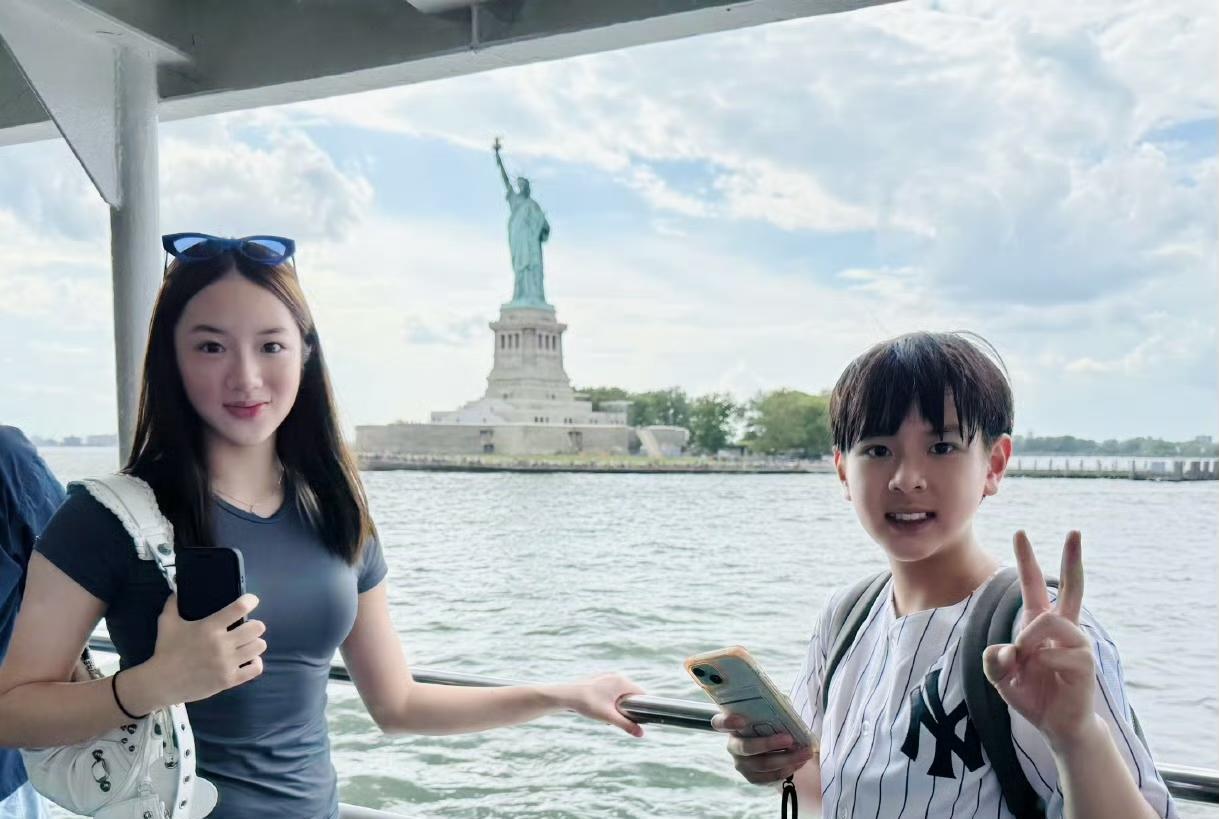 近日,吴尊带着家人到纽约游玩,趁着孩子们放暑假,带他们好好玩玩。 吴尊的14岁女