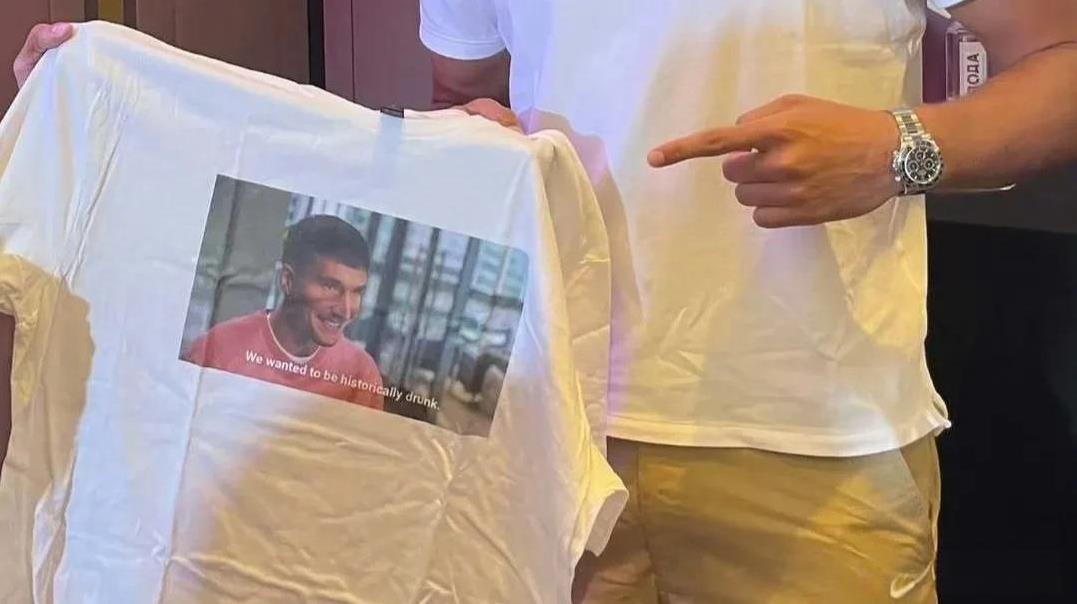 约基奇确认会参加欧锦赛,博格丹提前准备痛饮庆功酒了。 塞尔维亚男篮官方已经宣布约基奇将参加本届欧锦赛,有了他的存在,那塞尔维亚男篮毫无疑问会横扫一切对手,没有谁能阻止他们的夺冠势头了。 这对于约基奇来说也是一个补偿,毕竟过去两年他连续失去了2个总冠军和一个奥运金牌,这回要拿下欧锦赛金牌,也是一个安慰。 约基奇的参赛也让塞尔维亚男篮队长博格丹喜出望外,上一次他劝说约基奇参加世界杯无果也导致被德国男篮抢走金牌,现在总算把定海神针给盼来了。 因此博格丹拿着一件写着让我们一起畅饮喝醉的文化衫,他提前准备痛饮庆功酒了。