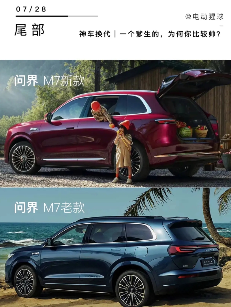 神车换代|来了终于来了…问界M7完成换代,前脸设计语言向大哥M9靠拢,尾灯设计更