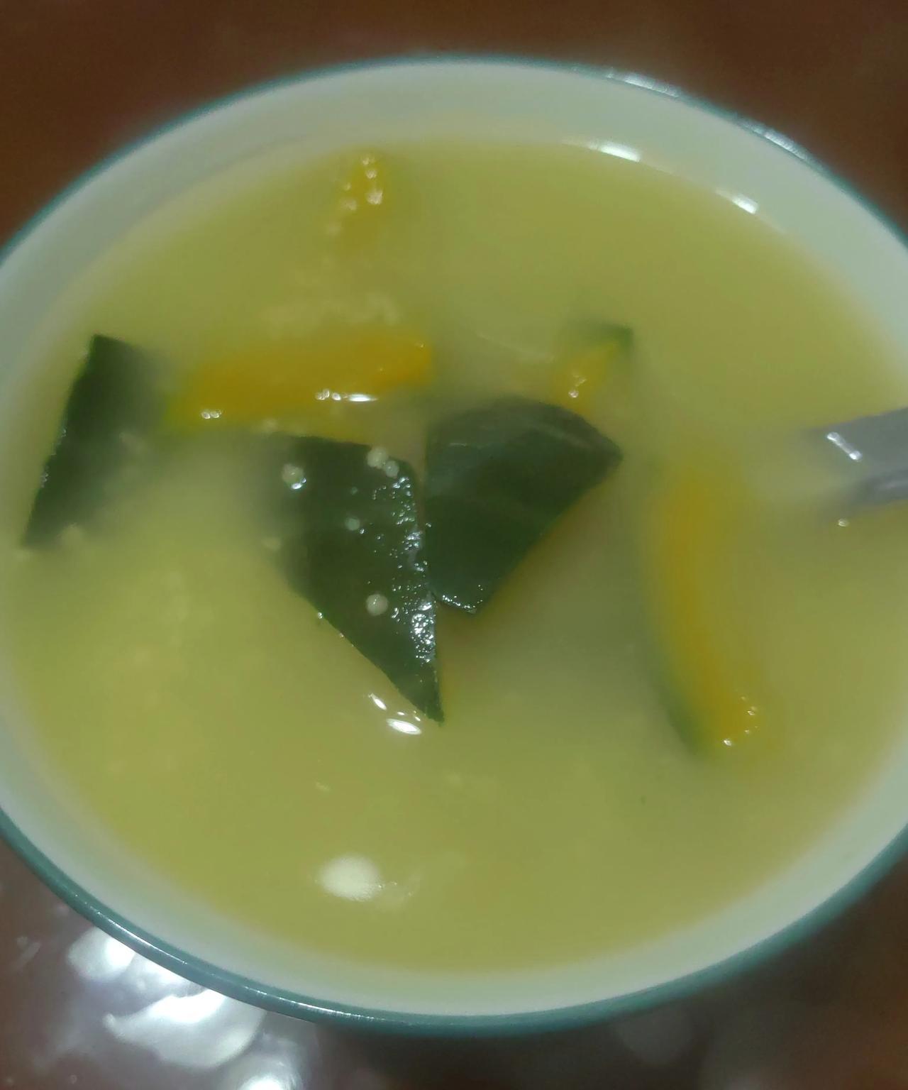 香煎茄子片,水煮蛋,小米南瓜粥,无花果,今天的田园风格的早餐! 昨天太累了,一晚