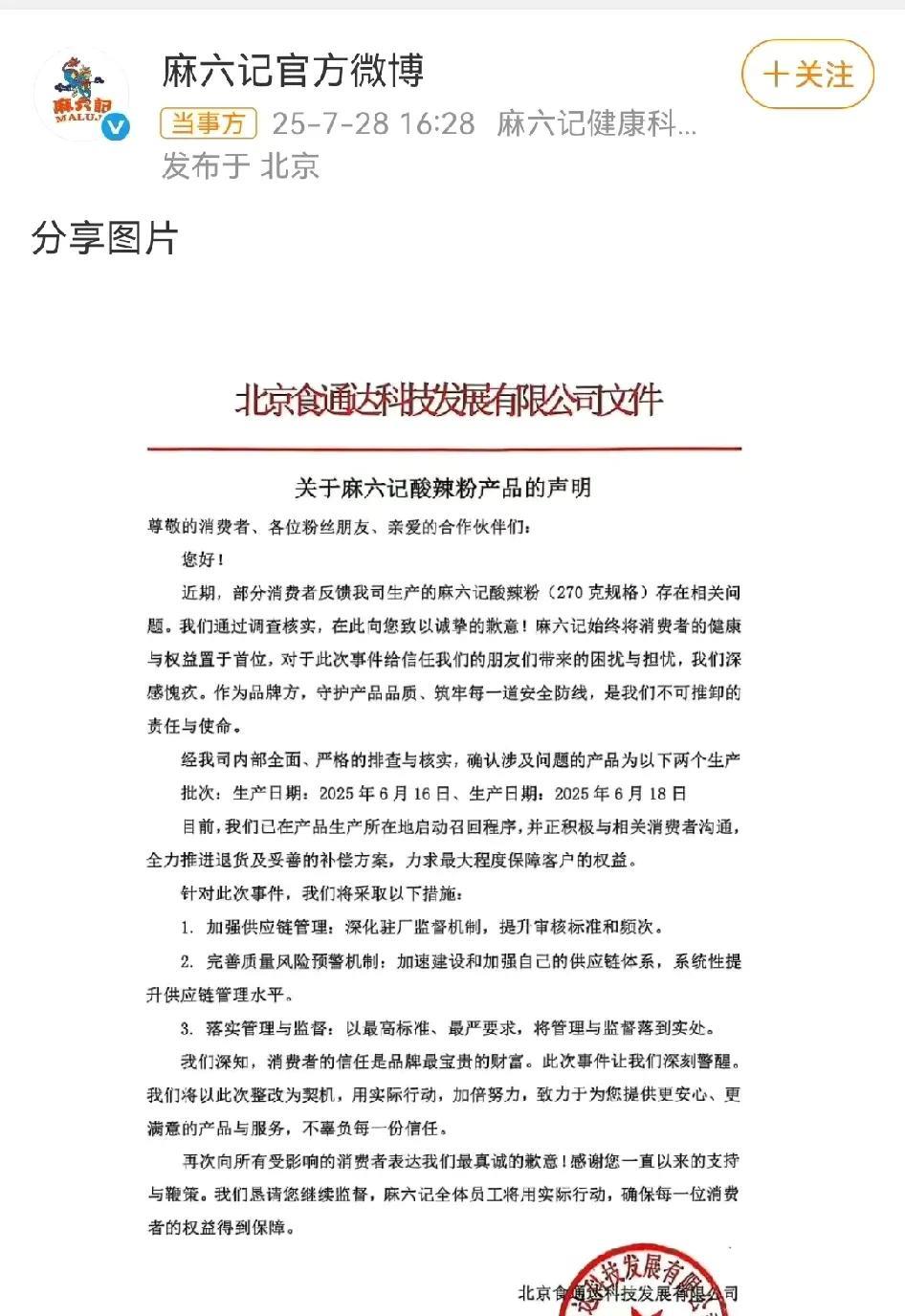 张兰被“打脸”了!张兰之前说麻六记的酸辣粉都是自家工厂生产的,但最近麻六记酸辣粉