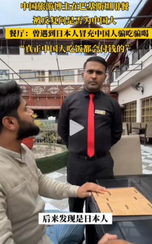 “太无耻!”中国博主在巴基斯坦用餐,被服务员反复询问是不是中国人。巴铁反常的举动引起了博主的警觉,随后服务员的一句话,更是让他欲哭无泪!原来,日本人总冒充中国人,来这里骗吃骗喝。 在巴基斯坦的一家小餐馆里,刚坐下的中国博主注意到,餐厅里的服务员总盯着他看,隔一会儿就过来问一句“您是中国人吗”。 明明已经确认过好几次,对方眼里的怀疑却没消减半分。 后来还是同行的巴基斯坦朋友忍不住了,拉着服务员问到底怎么回事,这才扯开了一个让人窝火的真相——有日本人顶着中国人的名头,在这儿骗吃骗喝。 据了解,之前有一群日本人走进这家餐馆,拍着胸脯说自己是中国人,还学着说几句蹩脚的“你好”“谢谢”。 老板想着中巴之间的情分,热情地免了单。 可没过多久,老板在网上刷到这群人的视频,才发现他们对着镜头炫耀,说自己是日本人,靠着装中国人在巴基斯坦白吃了多少顿饭。 更让人不忿的是,这种事不是偶然。 有人翻出过一本在日本流传的所谓“巴基斯坦旅行攻略”,里面写得明明白白:怎么学几句中文应付检查,怎么举着中国国旗混进当地人的圈子,甚至教着怎么跟餐馆老板套近乎,好让对方主动免单。 照着这本攻略做的人里,有的不光骗吃的,还敢跟着当地警察进警察局拍照,靠着“中国人”的身份要特殊保护,转头就把这些当成炫耀的资本。 不止日本人,连韩国人也跟着凑过热闹。 有阵子,一群韩国人组团去巴基斯坦的餐馆,吃完抹抹嘴就走,老板拦着要账,他们就比划着说自己是中国人,仗着外貌跟中国人有点像,想蒙混过关。 这些人算准了巴基斯坦人对中国人的热情,把这份沉甸甸的善意,当成了占便宜的工具。 说起来,他们的招数其实挺简单。无非是仗着亚洲人脸孔差别不大,学两句“China”“你好”,实在不行就装听不懂英文,等着老板主动把他们当成中国人。 可偏偏就是这种没什么技术含量的骗术,让不少巴基斯坦人心里打了疙瘩。 以前,巴基斯坦街头常有举着中国国旗的人,见了中国人就笑着用中文打招呼,拉着你说“中国好”。 巴以冲突那阵子,中国战机帮了巴基斯坦大忙,不少当地人走上街,举着中国国旗喊感谢。 那时候,餐馆老板见了中国人,常常大手一挥说“这顿我请”,可中国人从不会坦然接受,要么坚持付钱,要么回头买些水果、烟酒送过去——礼尚往来的道理,刻在骨子里。 现在不一样了,这些骗子的烂账,最后往往算到了中国人头上。 有人看到日本人装中国人骗吃的视频,可能就会忘了那些主动付钱的中国游客,只记住“中国人吃饭不付钱”。 可但凡稍微留意就知道,真正的中国游客,从不会把别人的热情当成理所当然。 他们会认真结账,会笑着说“谢谢”,会用自己的方式维护那份“巴铁”情谊。 后来那位被反复询问的中国博主,听了服务员的话,干脆帮着老板留意,后来还真撞见一个装中国人的日本人,拍了视频放上网。 视频火了之后,不少网友跟着晒出自己在巴基斯坦的账单,有人配文说“中国人吃饭,从来都给钱”。 还有人出主意,说下次再遇上装中国人的,就问一句“宫廷玉液酒”,真正的中国人一听就知道下句是啥,骗子肯定懵。 或者问“锄禾日当午”,哪怕是小孩都能接上来,一测一个准。 说到底,巴基斯坦人对中国人的好,不是凭空来的。 中国在中巴经济走廊投了不少钱,帮着解决电力短缺的问题,给当地人找了不少活儿干;巴基斯坦也帮着守好边境,让两边都能安安稳稳过日子。 这份情谊,是实打实的互相帮衬,不是用来骗吃骗喝的由头。