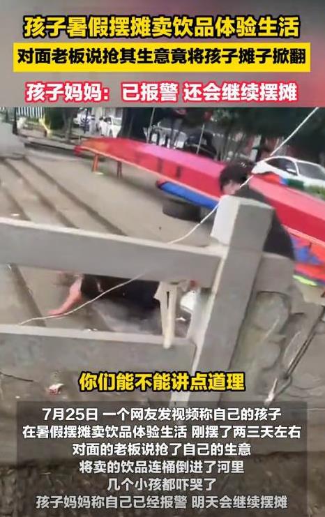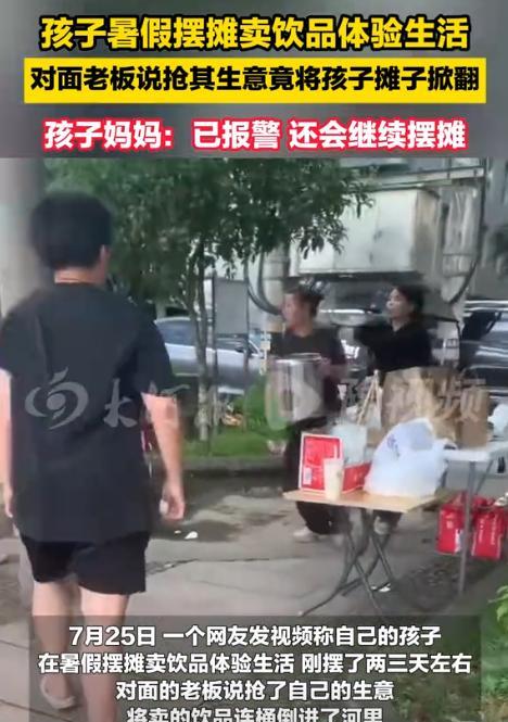“无法无天了!”近日,浙江,女生暑假摆摊卖饮品体验生活,不料,对面老板说她抢生意,竟然将女生摊子掀翻,饮品洒落一地,女生在旁边委屈得哭了,孩子妈妈不惯着她,直接报了警,并表示:还会继续摆摊,帽子叔叔都说了尽管摆! 正值暑假,一个小姑娘想利用假期体验生活,在妈妈的支持下摆了个饮品摊,她自己熬了绿豆汤,价格不高,材料也实在,说白了,这摊子不是为了挣钱,就是想体验一下劳动的辛苦。 没想到这件小事,却惹出了麻烦,摊子对面是一家饮品店,老板看着小姑娘的摊前排起队,心里不舒服,越看越气,觉得她挡了自己的生意。 结果这位老板没控制住情绪,冲过来直接把小姑娘的摊子掀翻,杯子摔碎,饮品洒了一地,就连桶也扔进河里,女孩当场吓傻了,眼泪直流,根本不明白自己怎么就成了“出气筒”。 就在这时候,给她送饭的妈妈正好赶到,一看孩子哭成这样,心疼得不得了,立刻上前质问对方。 老板态度强硬,一点认错的意思都没有,反而理直气壮地说她抢生意,妈妈当场火了,没再废话,直接拿出手机报警。 警察来了以后,很快就把事情弄清楚,明确告诉老板:人家在合法范围里摆摊,你这样掀人家摊子就是故意毁坏别人的东西,老板这才没了气势,虽然嘴上道了歉,但拒绝赔偿。 女孩的妈妈态度非常坚定,她当场表示,这事不会就这么算了,明天还会让女儿继续摆摊,她说:“我们就是想让孩子体验一下劳动,不是白拿别人的钱,谁也没权利这样欺负人。” 女孩擦了擦眼泪,重新把摊位支了起来,她说虽然心里难受,但不会被这种事吓倒。 这事传到网上后,很多人都替女孩和妈妈打抱不平,大家都觉得,做生意最重要的是靠本事,谁的东西好、谁的价格合适,顾客自然会去买。 生意不好,应该自己想办法改进,而不是靠砸别人的摊子解决问题,街道是公共的,没人能把它当成自己家,更没有资格随便欺负别人。 其实这种行为,本质就是仗着自己开店时间长,看不惯新来的,可这个社会讲的是公平竞争,想留住顾客,要靠真本事,不是靠欺负比自己弱的人。 这位妈妈的处理方式也让人佩服,她没有和对方吵架,而是选择报警,用最直接合法的方式维权,警察一句话让她心里更踏实:“尽管摆,有问题随时找我们。” 市场的竞争是公开公平的,谁做得好谁就能赢得顾客,靠着掀别人摊子吓走对手,只会让自己失去人品和脸面,真正的生意,是要靠真诚、靠实力去赢得尊重,而不是靠一时的蛮横。 这样的事说明一个道理:做人做生意,都要有底线,有矛盾靠法律和沟通解决,靠耍横和欺负人,只会让事情越来越糟,这样的老板生意注定走不远。 信源:法直播