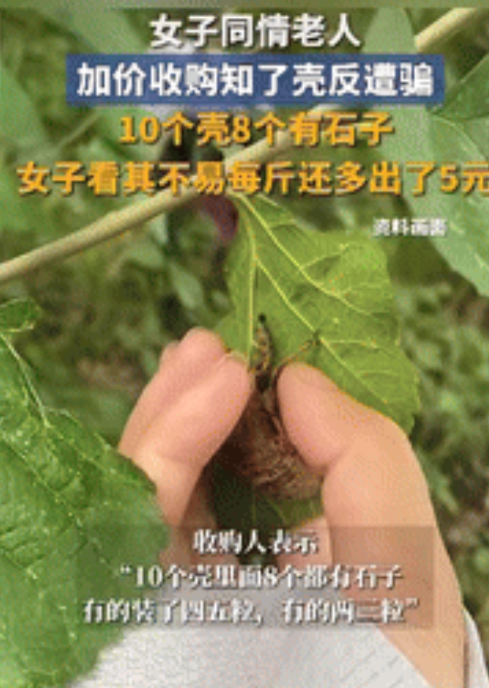 “坏了良心!”近日报道,陕西铜川,一女子收购知了壳,看卖家是个老人,就将原本325元1斤的价格,以以330元1斤收购,每斤多给5元,总共付了2000多元,女子收购完整理时,发现10个里面有8个壳子都塞满了石头,网友:有些老人不值得同情! “收货不验,等于白干。”虽然这句话已经在中药材收购圈里流传多年,但直到自己亲身经历过,何女士(化名)才真正体会到它的分量。 那天,何女士正收拾东西准备回家,一位佝偻着背的老人慢慢走了过来,手里还提着一个鼓鼓囊囊的布袋。老人的皮肤很黑,手指也十分粗糙,但他解开袋口的动作明显很是小心。 “闺女,你看看,这些能收不?”何女士随手抓起一把知了壳,发现成色确实不错,干燥完整,是上等货。按照行情,收购价是325元一斤。但她抬头看了看老人布满皱纹的脸和洗得发白的旧衣服,心里突然一软:“大爷,您这知了壳不错,我给您330一斤吧。” 老人的眼睛一下子亮了起来,他局促地在衣角上擦了擦手,连声道谢:“哎哟,闺女,你真是好人啊!我这把老骨头,上山下坡忙活好几天才攒了这么点……”他絮絮叨叨地说着,脸上的皱纹都舒展开来,露出了缺了颗门牙的笑容。 这话听得何女士心里暖暖的,所以她就特意多称了点分量,最后结算时给了2191元,而老人临走时还在不住地回头道谢。 然而,这份温暖在回到仓库后就化为了寒冰。当何女士开始分拣时,她发现手里的知了壳重量有些不对,轻轻一捏,竟然有细小的石子从缝隙中掉了下来。她连忙又掰开几个查看,结果却让她顿时浑身发冷。原来,这些精心挑选的“上等货”,腹部全被撬开塞满了小石子,有的甚至塞了四五粒。 “怎么会这样……”这时,何女士回想起老人感激的笑容,又想起那句“你真是好人啊”,只觉得无比恶心。经过检查,她发现80%的知了壳都被动了手脚,她的实际损失已经超过了1200元。 其实,这样的故事并不新鲜。随着知了壳价格连年上涨,一斤有的甚至能卖到上千元,而这巨大的利润就让一些人动起了歪心思。有的掺土,有的注水,但像这样把石子一粒粒塞进壳里的“精细活儿”,还是让很多见多识广的老收购商都直摇头:“这得花多少功夫?有这心思,干点正经活早发财了!” 如今的何女士,终于明白,在这个看似淳朴的乡村集市上,有些感激可以伪装,有些善良会被算计。她多给的5块钱一斤,买来的不是感恩,而是一个残忍的教训:当善意遇到精心设计的欺骗,受伤的往往是那颗柔软的心。 但是,社会的良心就像知了壳,看似坚硬实则脆弱,一旦被凿开缝隙,填进去的就不只是石子,还有人与人之间最珍贵的信任。所以,希望大家不论从事哪种行当,都能以诚信为本,千万别让好人寒了心。 信息来源: 荆楚网2025年7月28日|女子同情老人加价收购知了壳反遭骗,10个壳8个有石子。“当时收的是325元斤,看他是老头老太太,我收他的是330元一斤,一共我给他付了2000多块钱