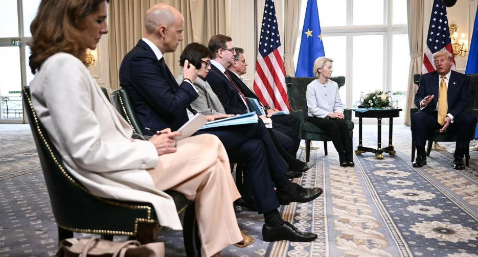 美欧关税会谈的现场是这样的,双方达成的贸易协议将对欧盟出口商品征收15%的关税
