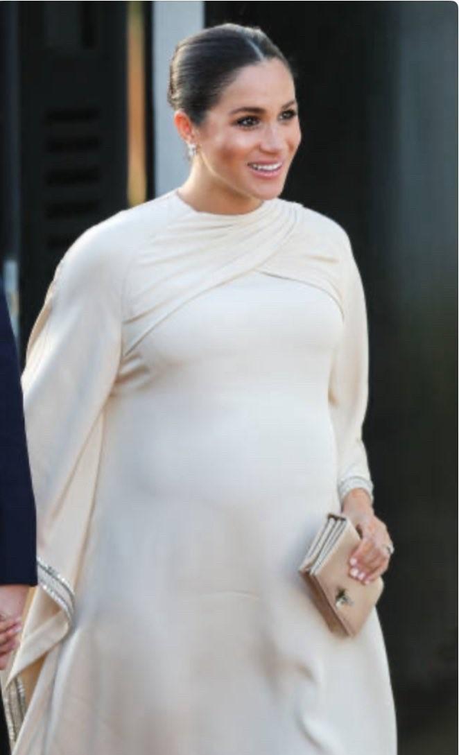 我觉得这条裙子以及那套红紫色的套装是她的败笔!她肚子上的“肚子”不仅上下起伏,而且肚子上还有某种衬垫。我调整了图2和图4的亮度,以显示裙子下面奇怪的“衬垫”。也许她以为,因为这件礼服用料很厚,所以能遮住任何“异常”。不幸的是,结果适得其反。