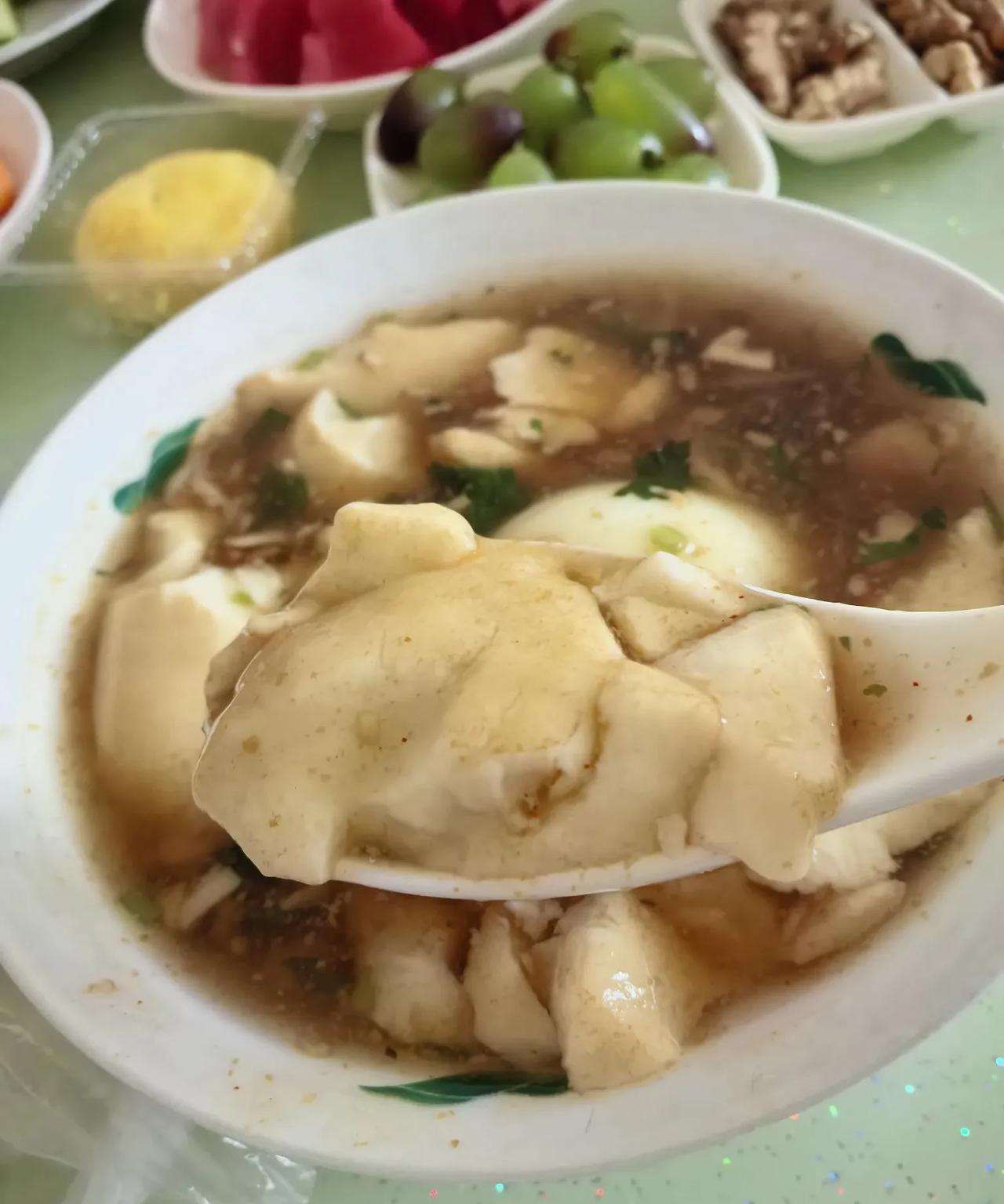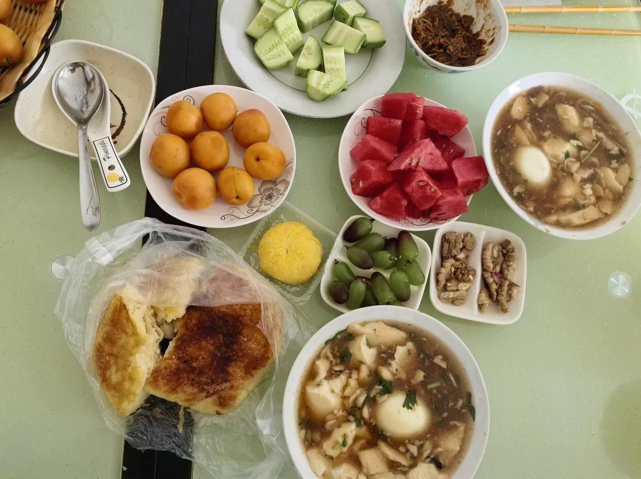 老妈去早市,特意给我买的烧饼豆腐脑,咱东北人的早餐挚爱!一份豆腐脑两块钱,我俩一人分了一大碗,我还没吃了。一个烧饼1块5,我吃了四分之一。这也太实惠了吧。 有人说杭州豆腐脑是甜的,别说是甜是咸,我根本都没见过杭州的豆腐脑,不知道哪里有卖。 除了烧饼豆腐脑,老妈整的又是蘸酱菜、又是水果,又是点心,又是核桃仁的。我说赶上慈禧太后了,恨不能一顿让我吃200个菜。 虽然我都奔六的人了,但在老妈面前我就是个孩子。每次都是,饭菜全给你摆好,你一觉睡醒出来咪西就行了。早饭还没吃完,中午吃啥都给你策划好了。有妈的孩子不管多大都是宝啊!