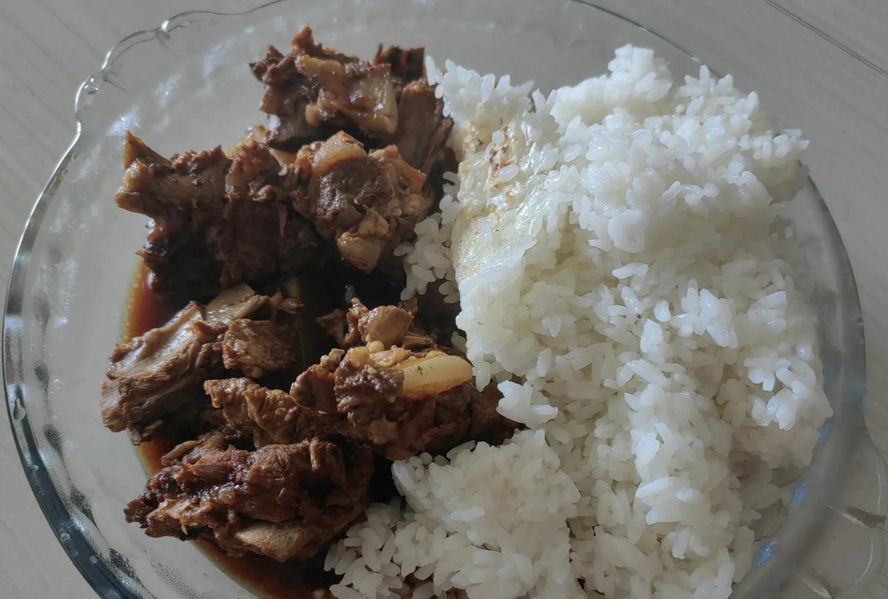 午餐,太座昨晚炖的排骨,以及她剩下的熬冬瓜,微波炉热过,配米饭。舒坦。
