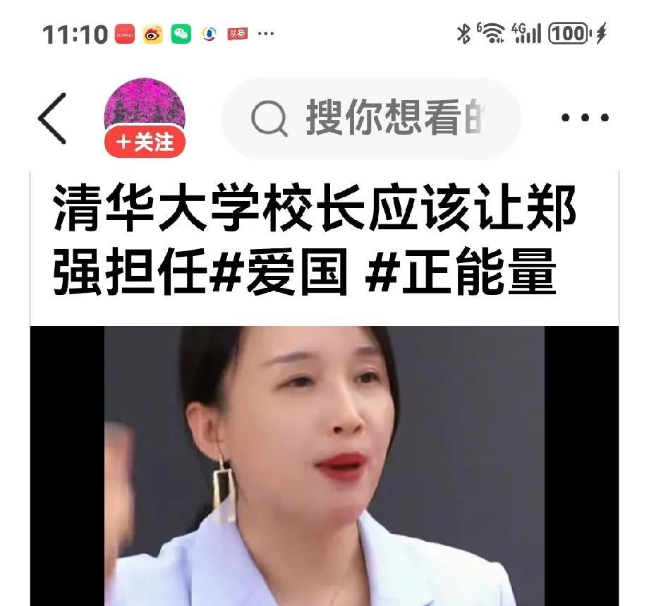 有个女子是郑的忠实拥趸。 王退休后前往福耀大学担任校长以发挥余热,郑被免职退休后,即便有下辈子也绝无可能担任清北的校长。当个郑氏那种声嘶力竭演讲的技校校长,或许还有点可能,只是并没有这种学校。 这个女子追捧王是假,吹捧郑才是真的。