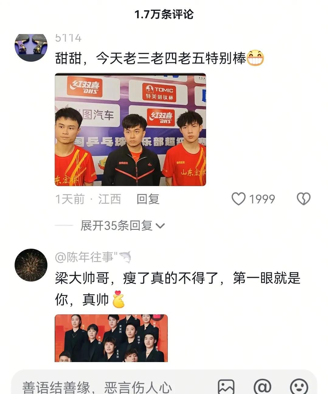 “我还好,别担心” 梁靖崑真的是个很温暖的人,他知道他因伤退赛会有很多球迷和粉丝一定非常关心他的情况,“我还好,别担心”简简单单的六个字,尽显球员和球迷之间简单直接的真诚互动。 梁靖崑比赛无论输赢大家都不会骂他,王楚钦的评论区都是学霸来报喜的,梁靖崑的评论区大家都是来给大胖送温暖的,球迷真的很奇怪,大胖真的是被球迷团宠的存在,大胖加油!早日康复重归赛场,第三阶段乒超联赛新疆见。
