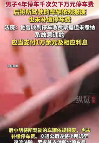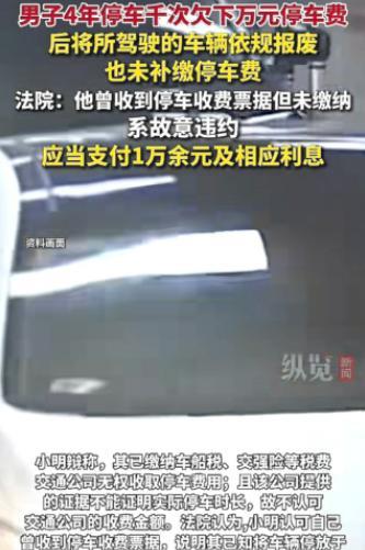 想赖也赖不掉!四川,一男子在路边停车4年,从未缴费,连贴在车窗上的缴费单都直接扔掉,心想着车都报废了,这事也就过去了。谁知4年后被交通公司一纸诉状告上法院,追讨1万多元停车费,男子还理直气壮地说:“凭啥交?你们没权收!”法院一锤定音:欠费属实,该补缴,还得加利息!网友一语道破:“车是你停的,钱却想国家替你出?” 根据纵览新闻7月11日的视频,这天一男子突然收到法院的传票,上面显示自己欠了交通公司一万多元。 原来在四年的时间里,男子在路边临时占道停车近千次,期间他对那些纸质罚单熟视无睹,认为对方无权收费。 直到车辆依法报废,这一万块钱的罚款也没有交上,因为男子认为,自己车都报废了,罚款应该跟着车一起“销毁”。 但是在四年后,他却收到了法院的传票,勒令自己尽快交齐这一万块钱的罚款。 面对这种情况,男子狡辩认为自己的车已经交了各种税费,交通公司无权收取停车费,而且对方提供的证据不能证明自己停车的时长,万一多要钱了呢? 法院表示,男子确认自己之前收到过罚单,那就证明他知道这里不能停车或者说停车要收费,依旧装作看不到,已经构成故意违约,所以必须支付给交通公司一万元以及相应的利息。 事情一出,网友纷纷表示,从小聪明变成大糊涂,这下得不偿失,四年不交钱,利滚利都滚出法庭了! 也有网友表示,临边占道停车不应该由交警处理么,怎么还扯上收费了? 你怎么看待这个案件?欢迎在评论区留言讨论。