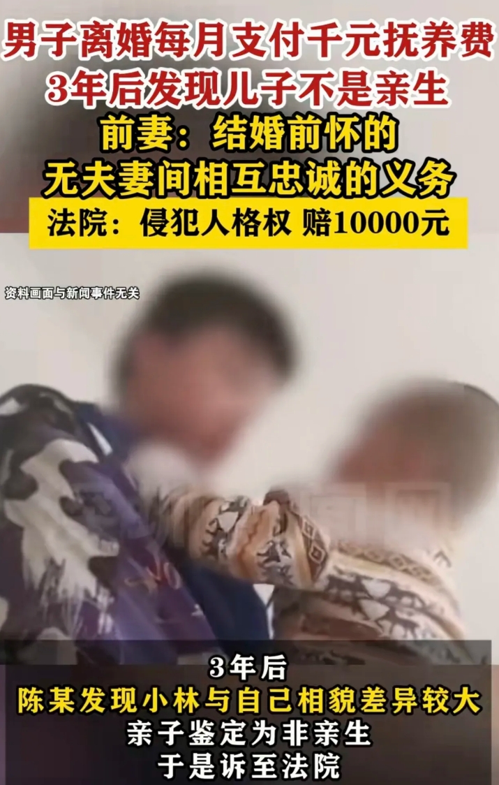 “当了3年冤大头!”一男子结婚一年,妻子就跟他闹离婚。儿子归前妻抚养,他每月出1000元抚养费,可男子支付32000元抚养费后,竟惊讶的发现,儿子跟自己长得不像,他起了疑心,做了亲子鉴定,结果晴天霹雳,儿子不是自己的,他愤怒的把前妻告上法庭,索赔32000抚养费和20000元精神损失费,但前妻却说:孩子是我和你婚前怀上的,我们不是夫妻,也无相互忠诚的义务,凭啥给你精神损失费?