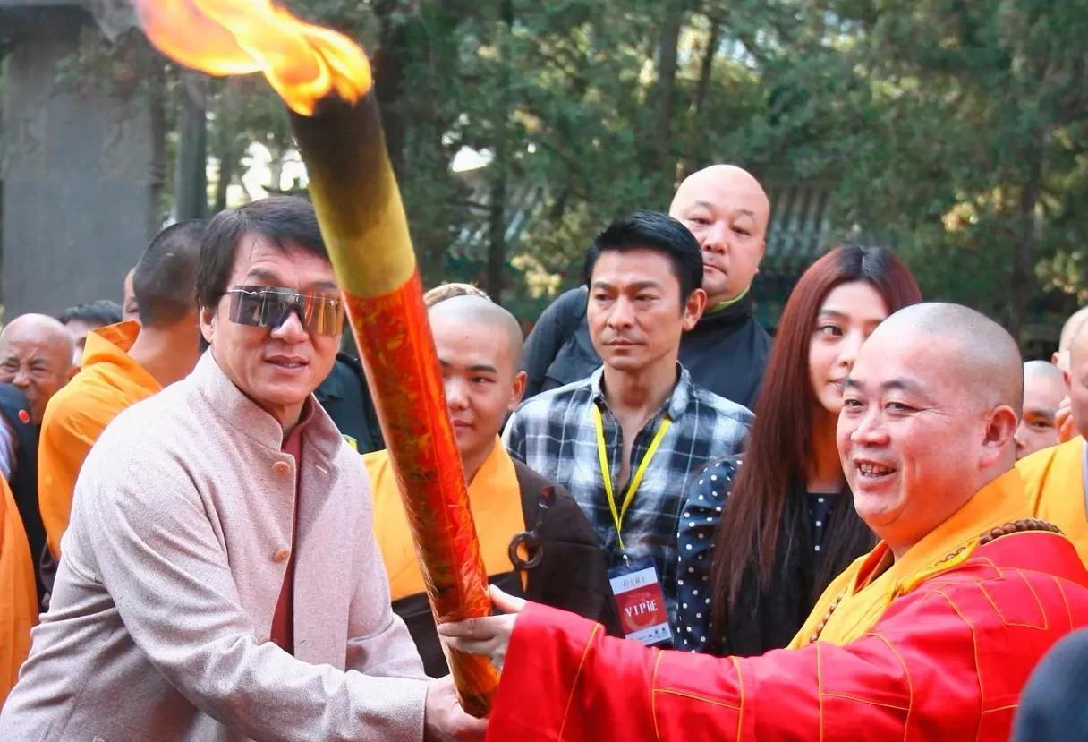 参政议政的释永信 图一图二,参加全国两会。 图三,与普京合影 图四,与成龙、刘德华参与火炬传递