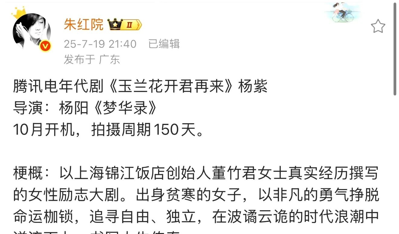杨紫民国造型大赏又要来了? 自从传出接演《玉兰花开君再来》的消息,有粉丝就开始操心民国造型。有些人期盼民国戏好久了,再说董竹君还是个真正的传奇人物,这个角色确实让人心动啊! 杨紫现在这个年龄接这个角色刚好,因为这个戏年龄跨度大,从少年到老年,30岁以前演不出厚度,40岁以后又演不出年轻时的感觉。 我还是挺期待的。