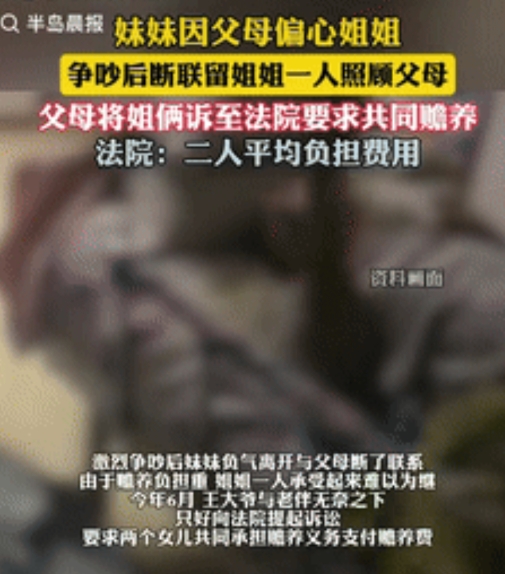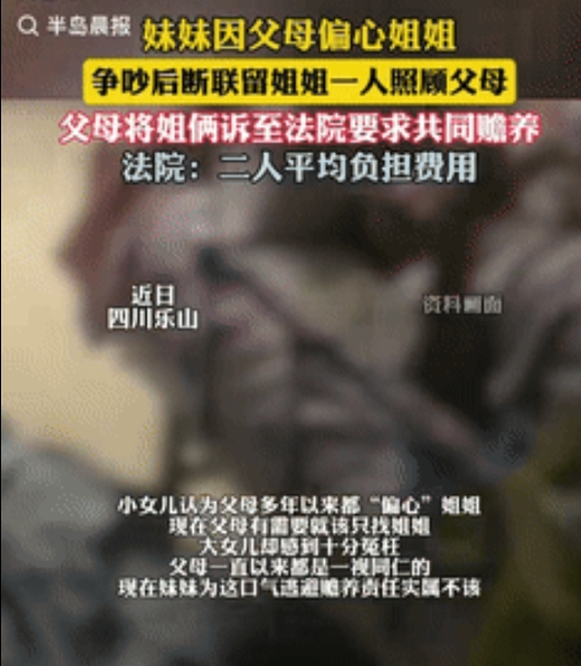 “这就是偏心的后果!”近日报道,四川乐山,一女子因父母偏心姐姐,不愿意出钱照顾生病的父母,可姐姐觉得很委屈,父母从始至终一视同仁,妹妹这样做,就是为了逃避赡养责任,两人争吵后,妹妹和父母断绝联系,让姐姐独自照料,父母无奈之下,只好向法院提起诉讼,法院判了! “我不管了!你们爱找谁找谁!”那天,小女儿丢下这句话就摔门而去,而这场争吵的导火索,是如何照顾瘫痪在床的父亲和行动不便的母亲。可姐妹俩都觉得自己是占理的那个:姐姐觉得妹妹无情无义,妹妹却满腹委屈:“从小到大,你们什么都偏向她,现在凭什么要我负责?” 原来,王大爷中风后,生活完全不能自理,老伴也因三级残疾导致行动困难。老两口的日常照料、医疗费用,一下子压在了大女儿肩上。她多次联系妹妹,希望两人共同分担,可妹妹的态度异常坚决:“他们只知道偏心你,现在有事了才想起我?” 在妹妹的记忆里,姐姐总是得到更多的关注:更好的衣服、更多的零花钱,甚至结婚时父母给的嫁妆都比自己丰厚。而父母对此的解释是:“姐姐身体弱,多照顾点怎么了?可这些理由,却在妹妹心里积攒成了多年的怨气。 但姐姐却觉得很冤枉:“爸妈哪里偏心了?只是她读书的时候家里条件不好而已,后来我结婚早,嫁妆都是自己攒的,爸妈根本没多给!”两姐妹各执一词,争吵不断升级,最终妹妹直接切断了和父母的联系,电话不接,家门不开,仿佛要与这个家彻底划清界限。 无奈之下,父母将小女儿告上法庭,要求她履行赡养义务。庭审中,妹妹依然坚持自己的理由:“他们偏心,就该让受偏心的那个负责!”可法官的话却让她愣住了:“赡养父母是法定义务,不因父母是否偏心而改变。” 根据我国法律规定,成年子女对父母负有赡养义务,这种义务是无条件的。也就是说,即便父母真的存在偏心行为,子女也不能以此为由拒绝赡养。因此,法院最终判决:两姐妹需平均分担父母的赡养费用,包括生活费、医疗费和日常照料。 然而,在冰冷的法律条文背后,法官也试图给这个家庭一些温暖。他单独和妹妹聊了很久,听她倾诉了多年的委屈,也劝解父母:“孩子心里有疙瘩,你们平时是不是忽略了她的感受?”而老两口沉默许久,最终叹了口气:“我们也没想到会这样……” 不过,妹妹虽然接受了判决,答应支付赡养费,但她和父母、姐姐之间的关系,依然充满疏离。而姐姐在长时间独自照顾父母后,虽然得到了法律上的支持,却也身心俱疲:“一家人闹到这一步,真是没意思。” 其实,在多子女家庭中,父母的“偏心”往往并非刻意,而是一种无意识的倾向:比如更关注体弱的孩子、更依赖性格温和的子女,甚至仅仅因为某个孩子长得更像自己年轻时候的样子。可这些细微的差别,在另一个孩子眼里,可能就是不被爱的证据。 只能说,赡养是义务,但亲情更需要经营。父母若能尽量“一碗水端平”,子女若能多些理解,或许很多矛盾就不会激化到对簿公堂的地步。毕竟,法律能判定义务,却判不回失去的温情。而当父母老去,当子女成年,真正能维系这个家的,不是法院的判决书,而是彼此的理解与包容。 信息来源: 半岛晨报2025年7月27日|妹妹因父母偏心姐姐拒绝赡养父母(大参考)