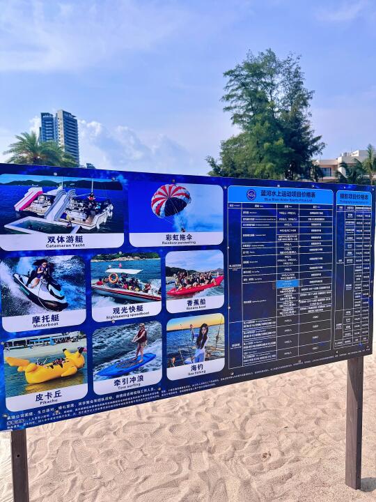 3️⃣海滩上提供快艇、降落伞等多种娱乐设施供选择。🛥️