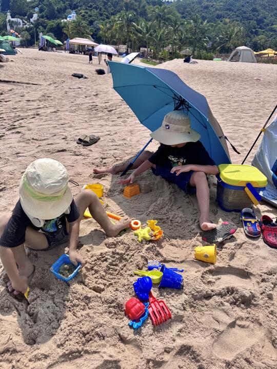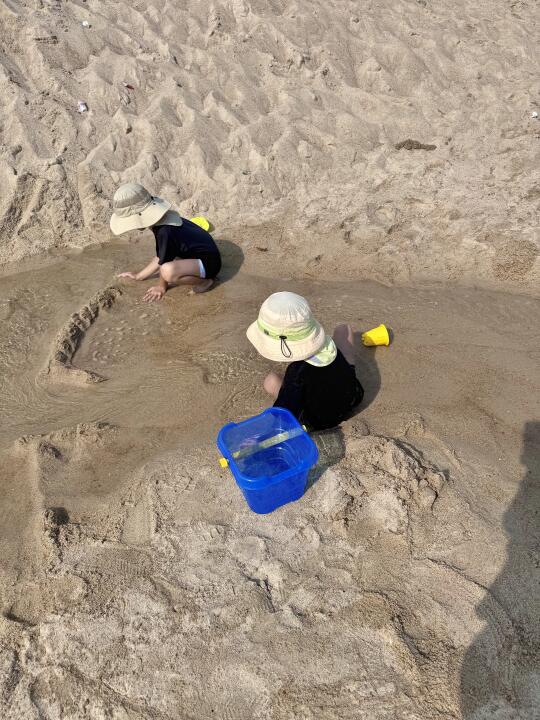 带两个娃出门,状况总是不断😅。刚买门票进去,哥哥就不小心摔了一跤,胳膊都擦破皮出血了,原本计划好的游泳只能泡汤😭。不过好在玩沙子也能让孩子们玩得不亦乐乎,时间一下子就过去了。而且,我们还意外抓到了4只蝌蚪,也算是这次游玩的小惊喜🐸!