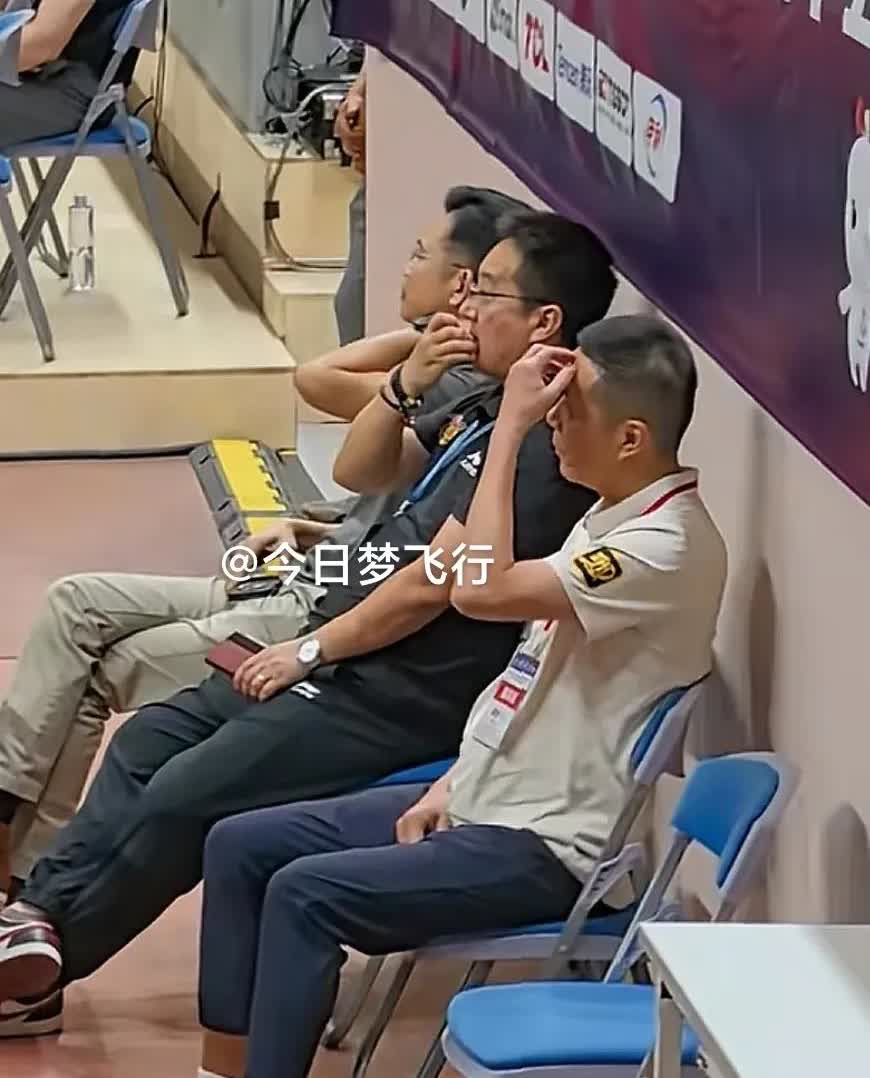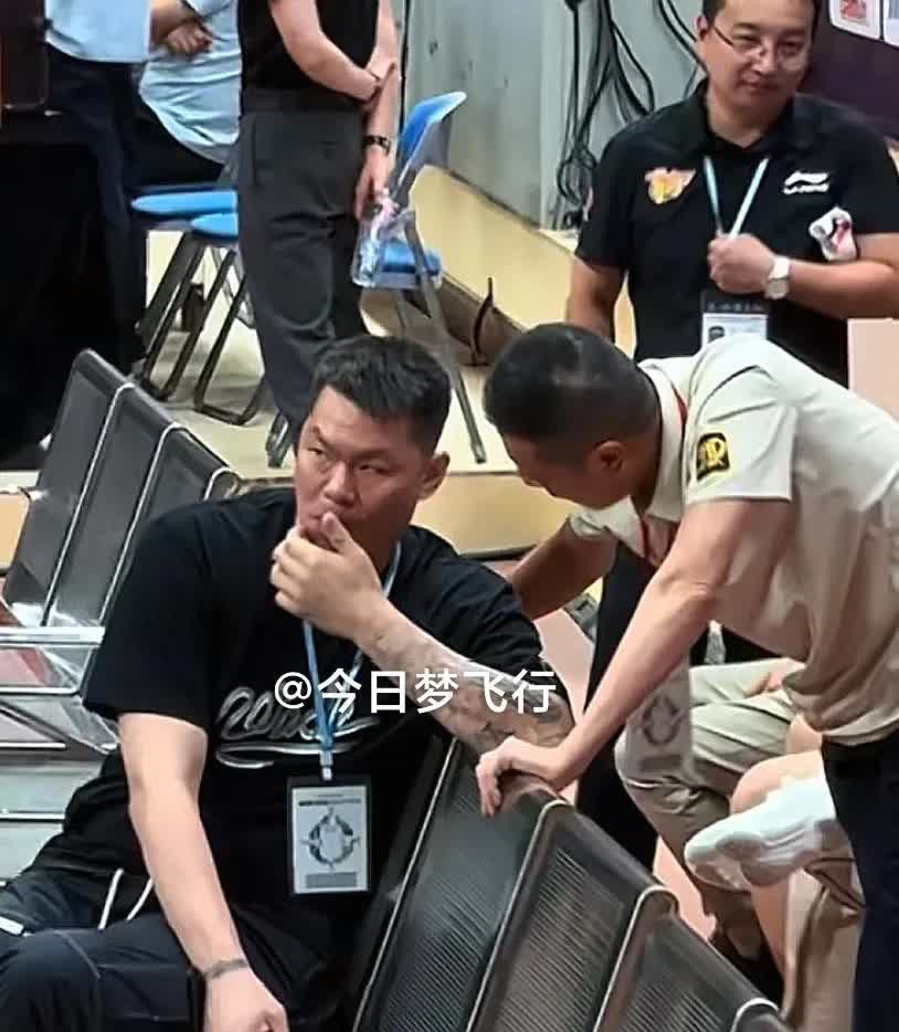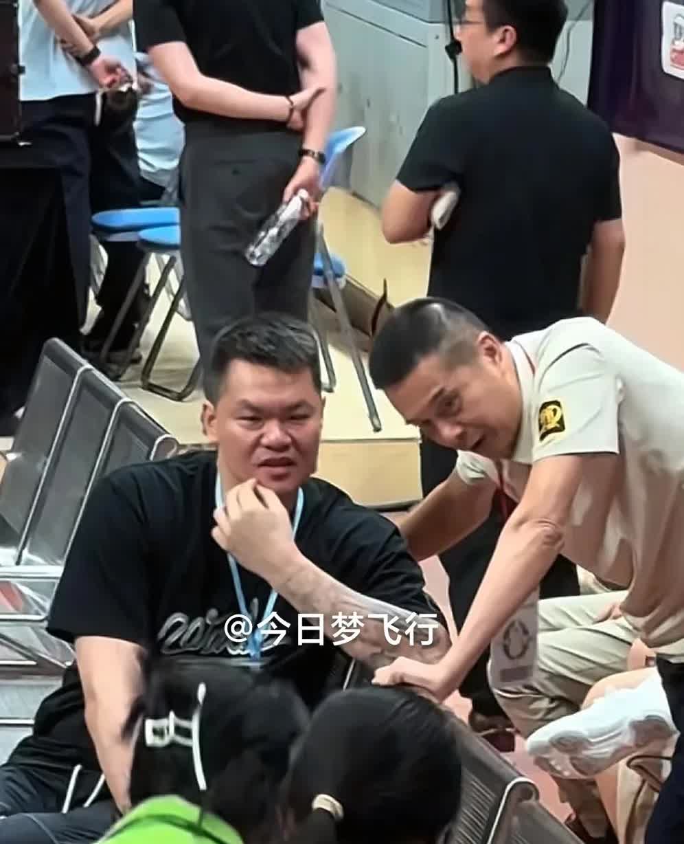 广东宏远老板陈海涛现场观赛,与俱乐部总经理朱芳雨谈话! 昨晚,FIBA国际