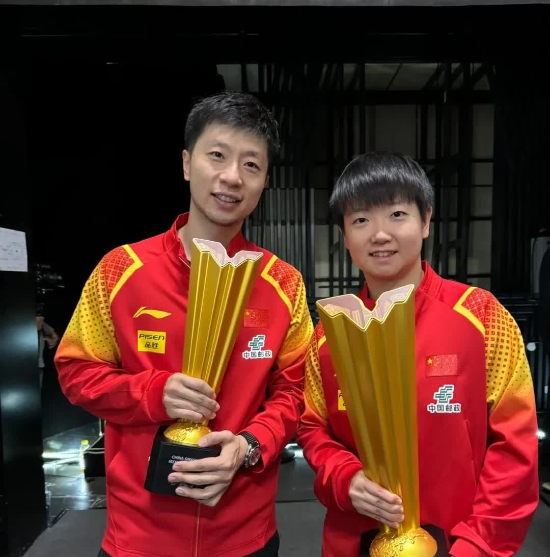 最强男正手和最强女正手惺惺相惜。马龙形容孙颖莎:乖萌萌。孙颖莎曾说:最想和马龙配