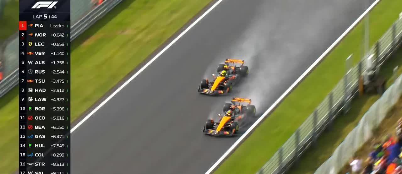 勒克莱尔、皮亚斯特里和阿隆索是支持赛会干事推迟比赛的三位车手,而以两位世界冠军维
