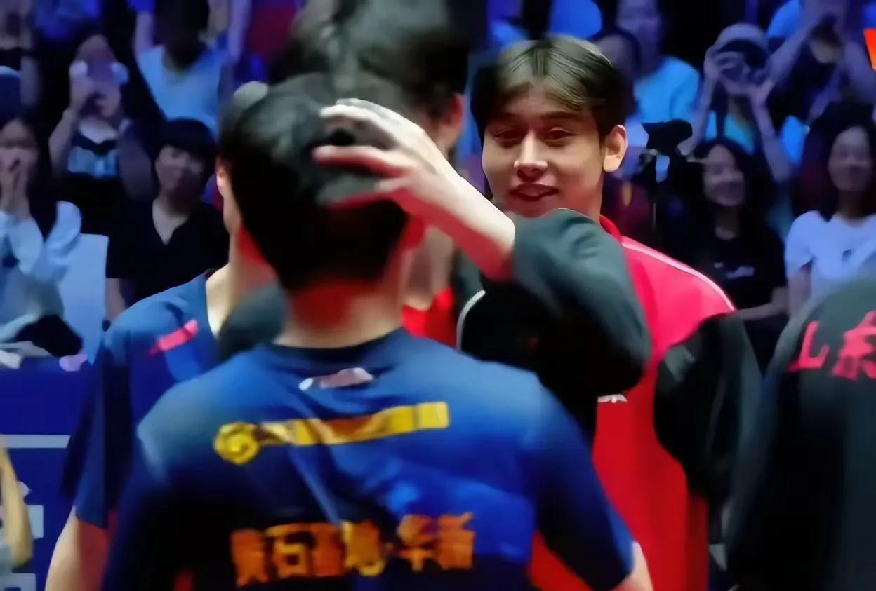 王楚钦对林诗栋的摸头杀,是对手也是队友,更是兄长对小弟的疼爱。紧握的手,是世一和