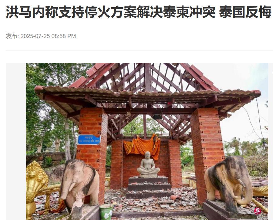 洪森闹这一出得到了什么,除了害了佩通坦真没看出来他有什么收获。被泰国打疼了吧,洪马内现在积极求和,先找联合国呼吁和平,再找美国主持公道,现在又找马来西亚出来斡旋和谈。洪氏父子统治柬埔寨几十年了,他们也害怕打仗,真乱了统治权就结束了。