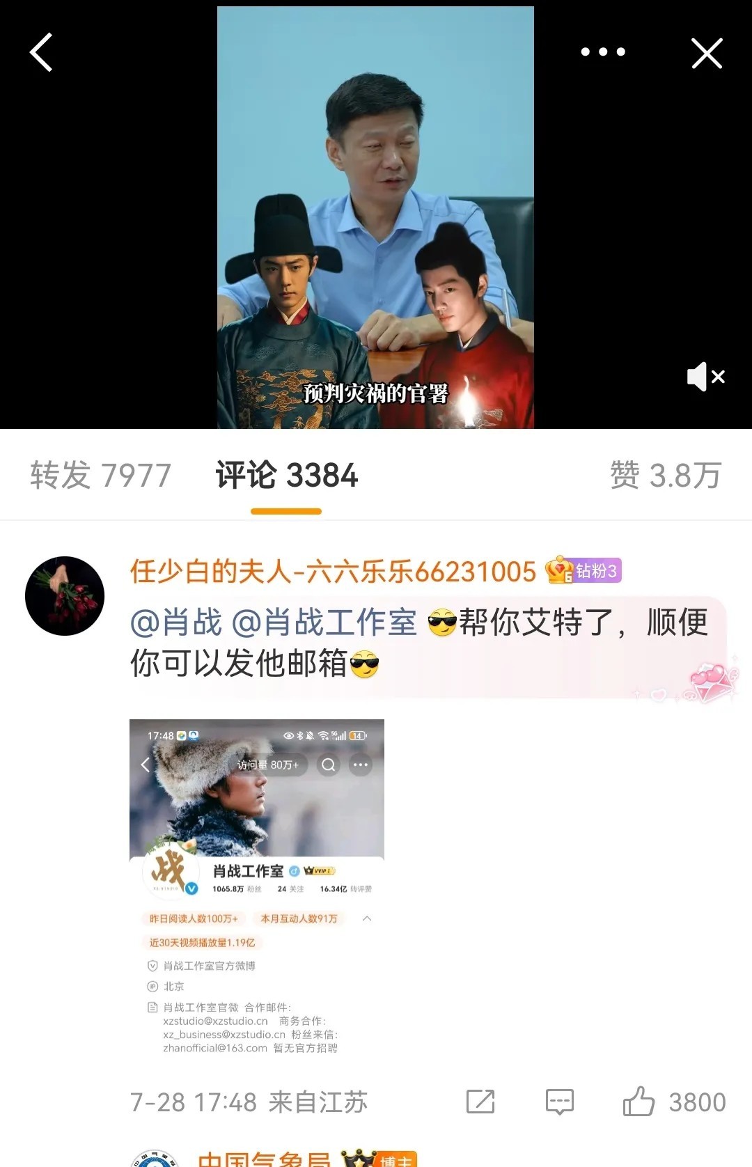 中国气象局要找肖战拍宣传片,因为他饰演的藏海是钦天监后人……还跟小飞侠互动。 看来《藏海传》真是火啊!