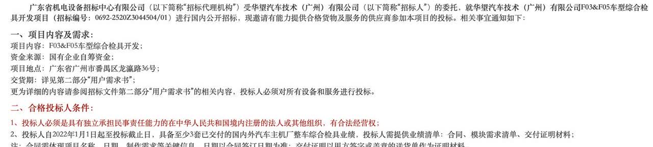 广汽与华为合作项目终于迎来重磅进展!从华望汽车最新发布的招标公告,我们了解到这