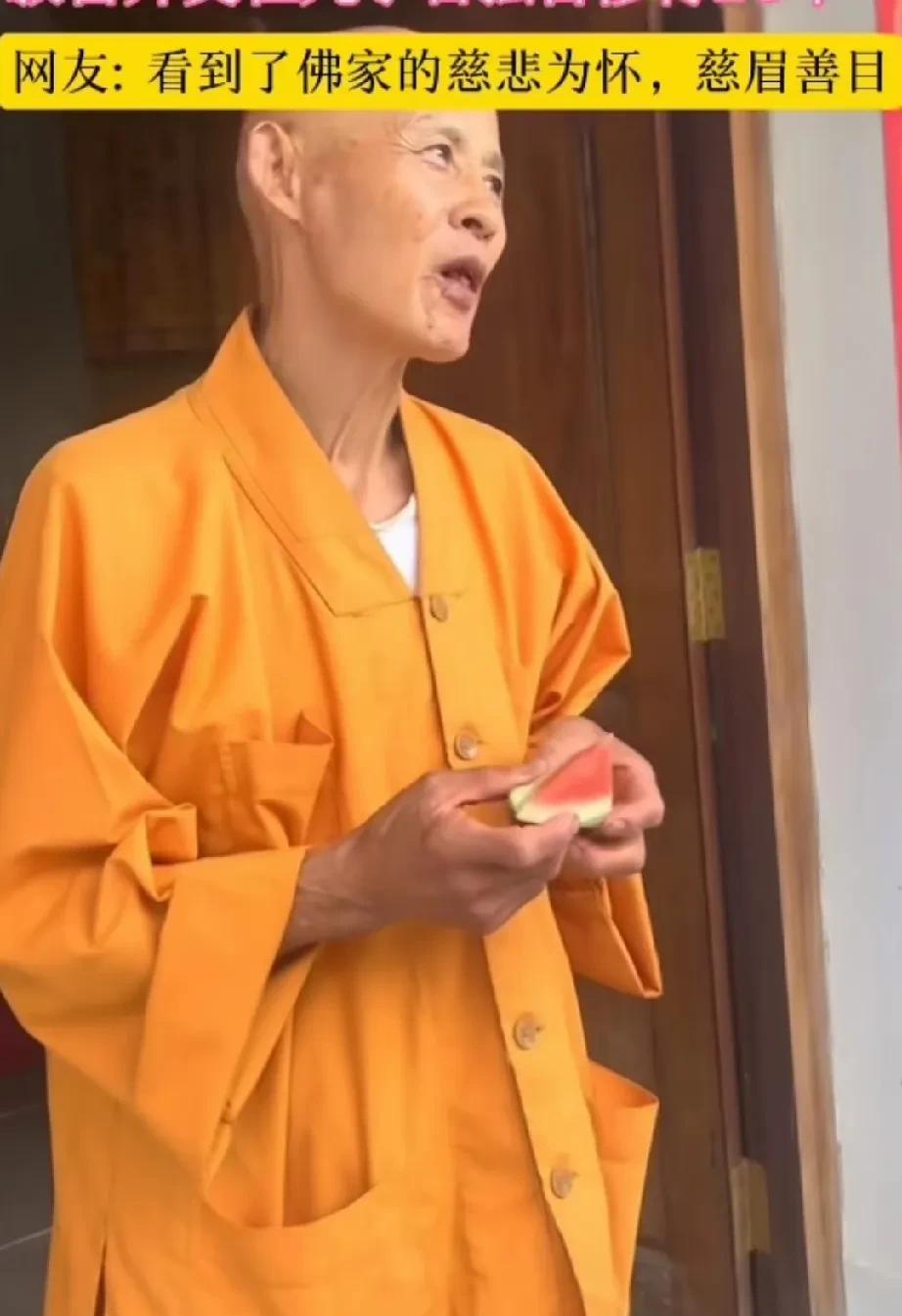 这才是真正的慈悲为怀,慈眉善目。这样的出家师父才是我们心中慈悲的代表,不管有没有信仰,见到他就会心生欢喜。 在九华山的后山九子岩有一位寂富师父,在这里已经修行20年了,青灯古佛经卷,山色树林寂静,让他的面目越来越慈悲,每次只要有游客到访,他都会笑容满面的拿出各种零食请大家来吃。 夏天的时候,他抱来一个贡果大西瓜,给大家切着吃,每一次他都把甜的大块的留给游客们,而自己只肯吃一些边边角角。 也许一生只见这一面的陌生游客,他却依旧满心欢喜溢于言表,打心眼里想要对这些陌生人好,笑容始终挂在脸上,让人看着喜悦舒畅。 网友评论说,这样的僧人才是我们心中真正的出家人! 理智的人不会因为某一个人的犯错而对整个群体一概否定。