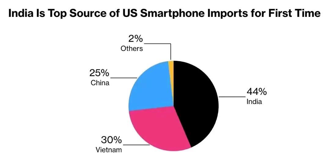 中国市场份额从61%大幅下滑到25%,恐慌吗?看清了背后的真相,你就明白这是杞人忧天! Canalys数据显示,今年第二季度,印度首次成为美国智能手机的最大供应国,占据44%,越南排名第二,中国则从61%大幅下降至25%,排在第三。 印度登顶的主要原因是苹果大幅提升了印度产能! 有的人在哀叹:贸易战伤筋动骨了! 真相是:组装代工低端局,中国不玩了!中国自己的品牌攻城掠地,高端局已经玩嗨了! 2024年全球智能手机出货量前十榜单,中国厂商占了8席,其中小米、传音、OPPO、vivo年出货量均超1亿台,合计占据全球58%的市场份额! 其中小米2024年出货量1.686亿台,全球第三,同比增长15.4%。传音以1.067亿台出货量,全球第四。 有的人总是在为下跪找理由,悲哀!