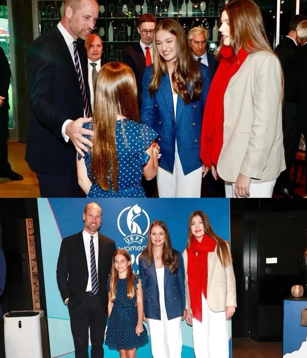 夏洛特公主和西班牙王室姐妹花 昨天在巴塞尔的女足欧洲杯决赛上,三个最有人气的公主