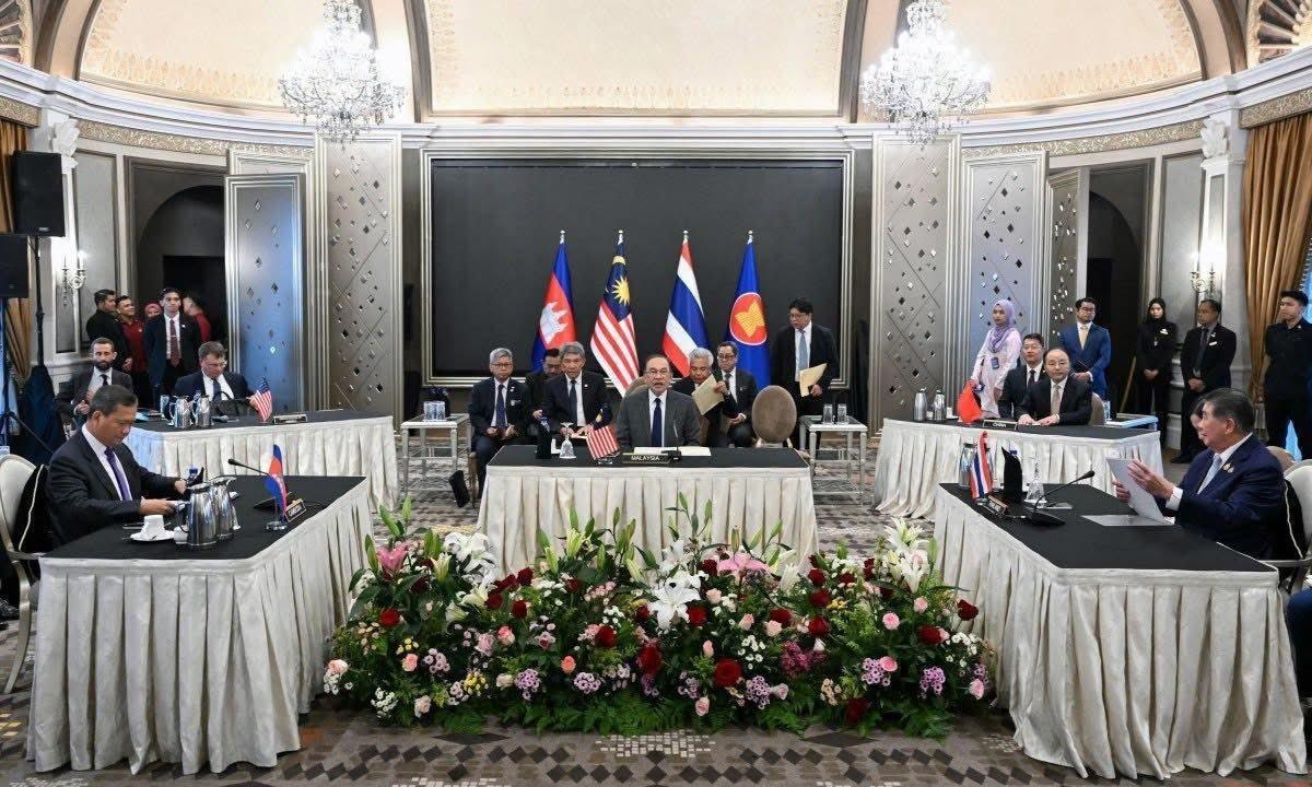 中国不主动都不行了,已经混成蓝星大哥了,大哥就是身不由己呀 泰柬开始在马来西亚谈判,现场如图。左为柬埔寨总理,右为泰国代总理;中间是马来西亚总理。马来西亚总理左后方是美国大使,右后方是中国大使。东盟也没捞着个座,光插了根旗,看着座位安排的,一座涵盖全球呀!中方不主动都不行了,大哥就是大哥。中国已经混成蓝星大哥了,当大哥就是身不由己呀[呲牙]