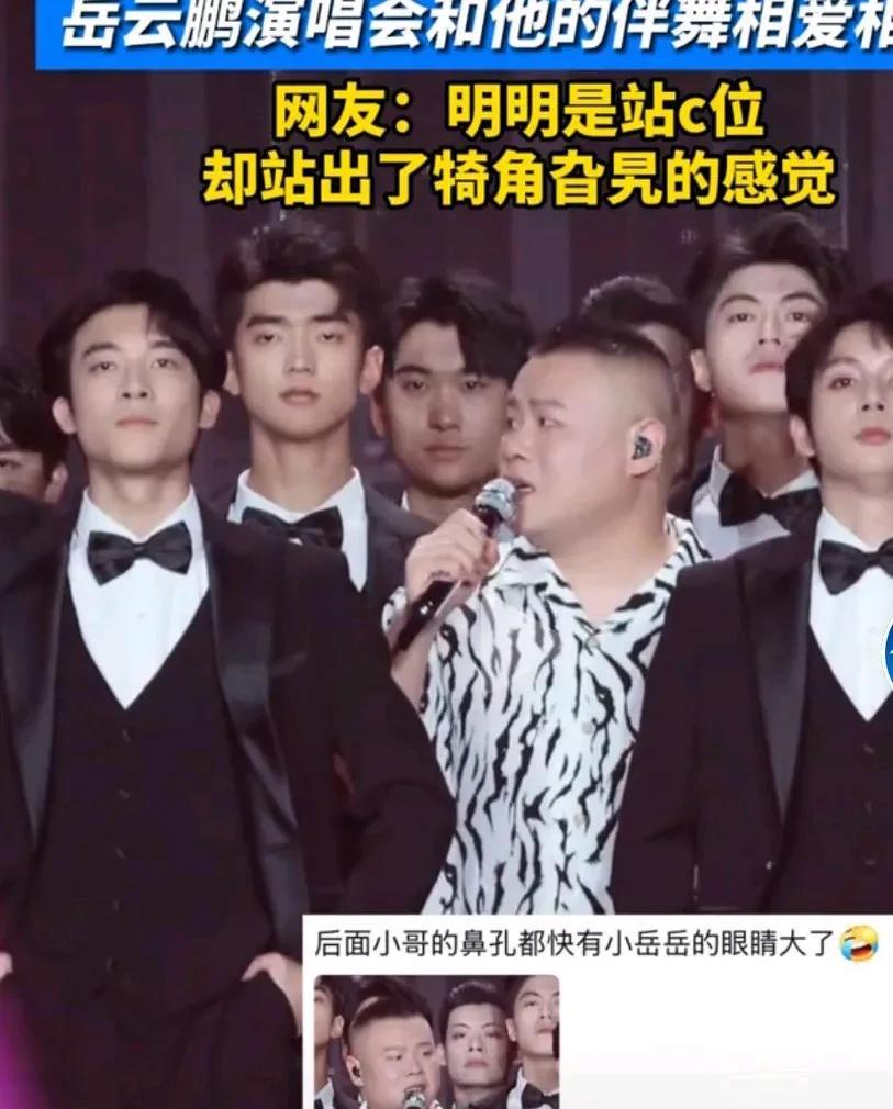 真的被岳云鹏和伴舞相爱相杀的画面给笑死了。第一次见演唱会还能这么玩儿的。 看到这网友直接评论见过绿叶衬红花的,第一次见小鲜肉衬五花肉的。 网友评论明明是c位却站出了犄角旮旯的感觉。 更有网友评论后面这小哥儿的鼻孔感觉比岳云鹏的眼睛大了。 最重要的是岳云鹏唱的这首歌实在是太应景了。只能说这一场演唱会直接叫岳云鹏玩儿出花儿来了。 看到这儿也知道为什么岳云鹏的上座率那么高了!演唱会既能听歌也能看相声,还能看到这么搞笑的画面怎么能上座率不高呢?你说。