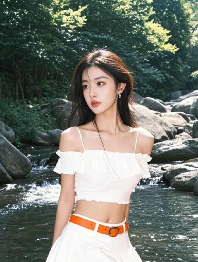 溪畔惊鸿:她裙裾拂过水光,碎了一溪星子。