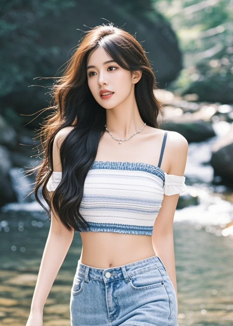 溪畔惊鸿:她裙裾拂过水光,碎了一溪星子。