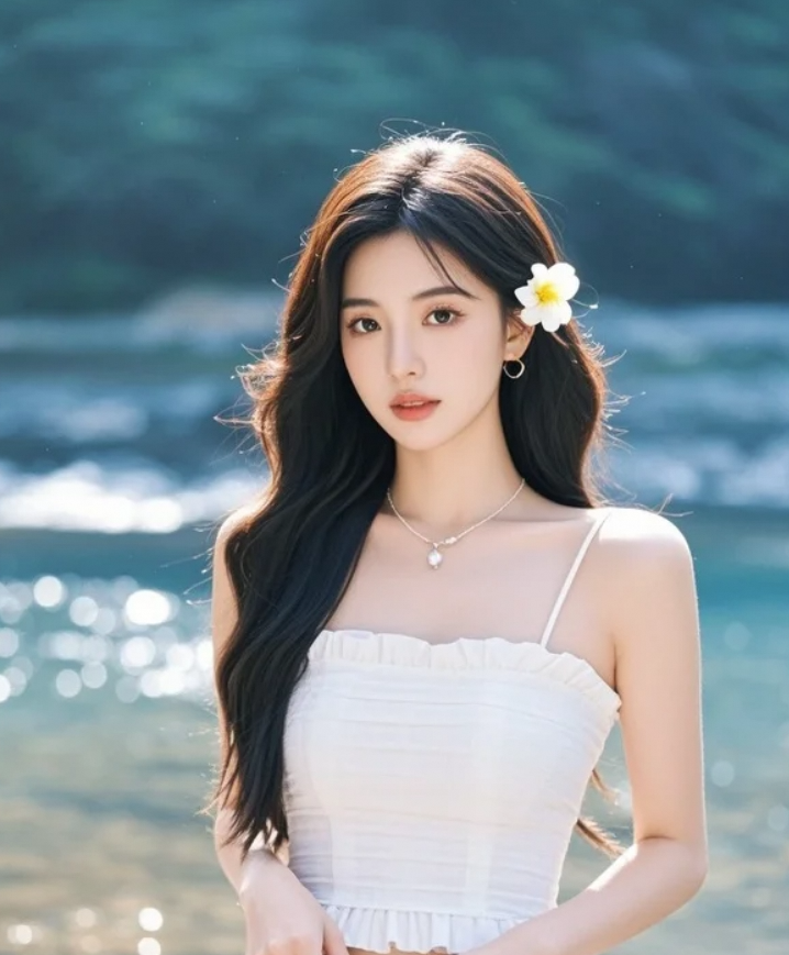 她赤足踏过浅滩,每一步都印下清凉的诗行。