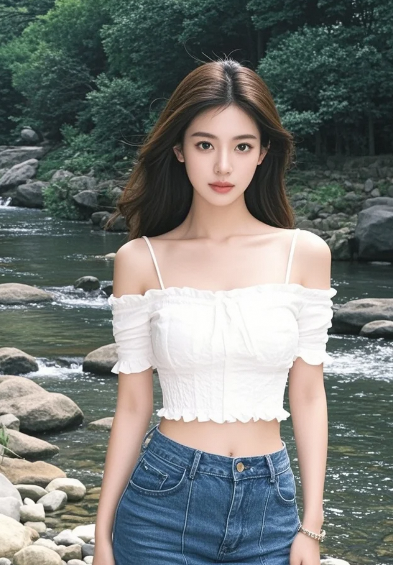 溪流是时光的刻度,她静立,仿佛定格了最美瞬间。