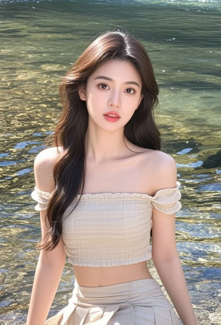 她赤足踏过浅滩,每一步都印下清凉的诗行。