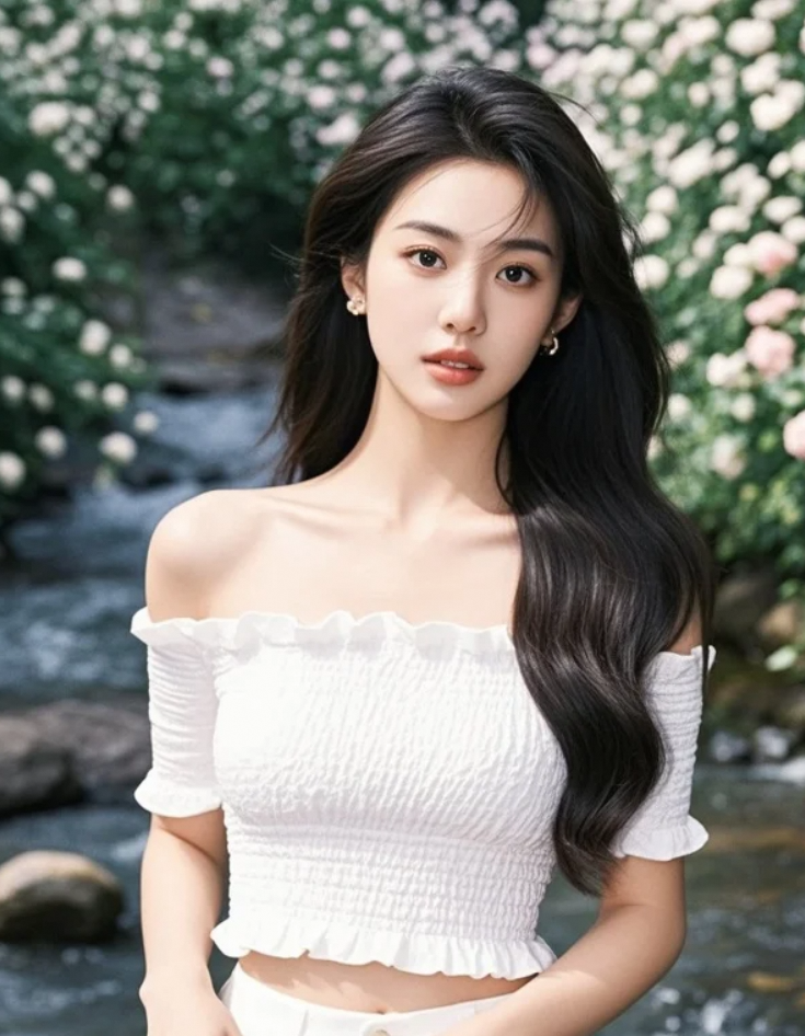 水底卵石斑斓,映衬着她纯净无瑕的侧颜。