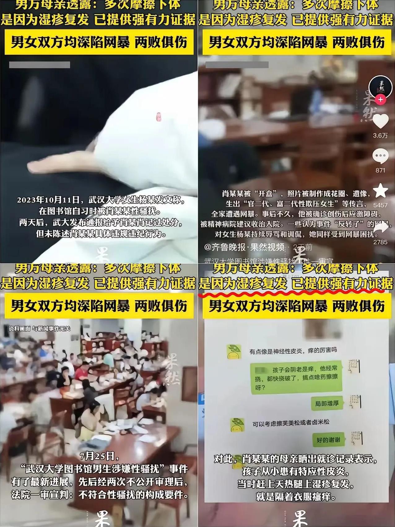 我一般不太评论热点新闻,但武大女研究生杨景媛诬告大一稚嫩男生猥亵事件,实在令人忍不住,这可能是我见过最可怕的人,我终于明白古龙的那句话 杨景媛的6个手段: 第一个当时的她已大三,而此时肖同学刚进入武大,还是刚走出高中进入大学的19岁男孩,是那么的稚嫩,根本没有经受过社会的毒打,人心的险恶。 第二个这个杨某,她竟然长时间拍摄肖的下面,而肖根本都没抬头看过她一眼,而更重要的是肖有一个毛病,就是湿疹,这也让他长期受这病困绕,这让他有时间需要挠痒才能解决,这也是让肖被抓到把柄的原因。 第三个这个女的,竟然聪明到这个地步,先把道歉骗到手,肖同学也只是想息事宁人,以为写了正如女的就原谅了,想不到这正是噩梦的开始。 第四个这个女的拿着这证据,就直接威胁校好,要进行处理,从而有了后面一系列的处分。 第五个当法院公正的还肖清白后,这个女的竟还不肯放过,声称举报到底。 第六个她还洋洋得意晒出保研成功,读博士的喜讯。 这还是人么? 就没人还肖一个公道么?