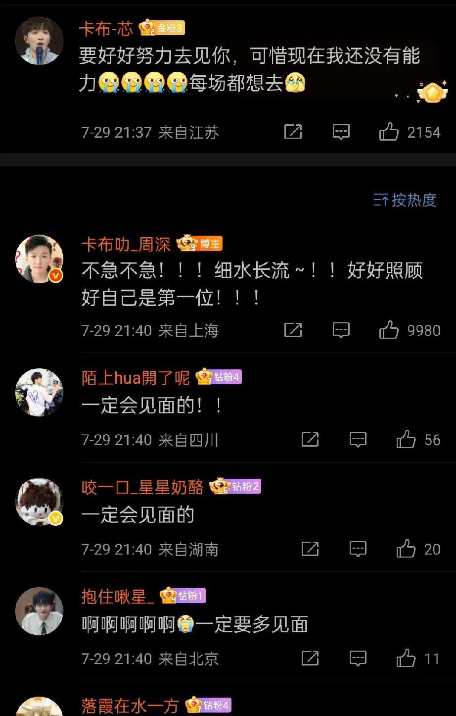 萱妞:在这恭喜各位抢到贵阳站的米子哈! 听说不少米连续两场都抢到了! 没条件去的是真心羡慕哇!真想每次都参加![酸] 周深:不急不急!!!细水长流~!!好好照顾好自己是第一位!!! 萱妞:深深总这样,米子们都被他暖化了! 最近牵扯周深的黑真是越来越多了!与周深毫无瓜葛的事,竟然也能把周深给扯上,闲的吗? 甚至有知名前辈因周深的实力威胁到自己在圈内的地位而睁眼说瞎话!(为了前辈的面子,就不提名发布证据了) 相信正能量的前辈,听了周深的歌,定会感叹长江后浪推前浪!高兴的告诉大家,中国乐坛后继有人了! 如无法接受他人比自己优秀,建议远离![握手] 周深的生米们只想在深深的陪伴下快快乐乐的,不想参与任何纷争! 记住!主动跑到别人家里各种对比拉踩的,定是披皮黑!