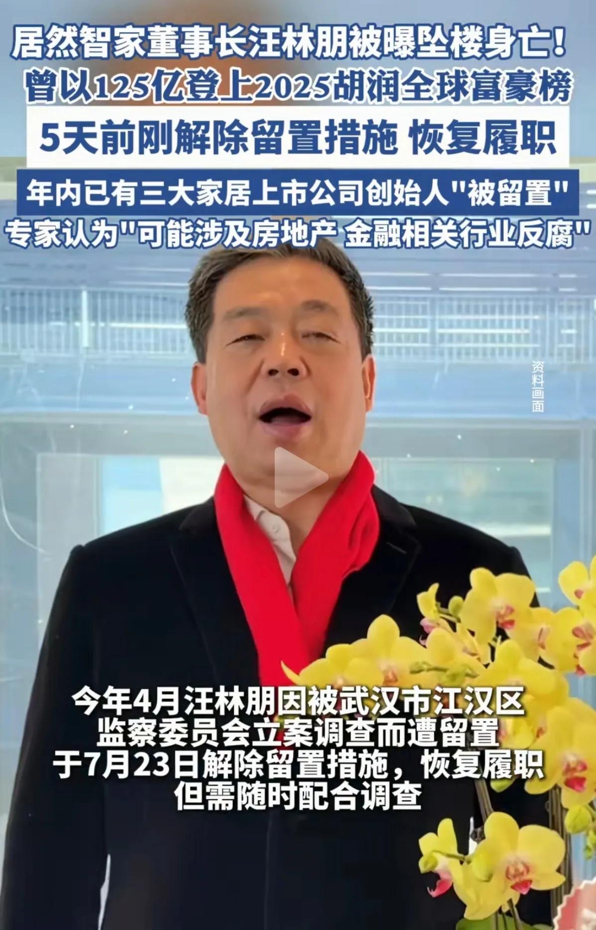 居然智家董事长被曝坠楼身亡,让人非常惊讶。 晚上我和老婆讨论此事,想不明白,都这么有钱了,咋想不开坠楼。 钱虽然越多越好,但前提是能够有命享受。 不然赚了一大堆钱,结果没命花,也是可惜。 还不然咱们这样平平安安,虽然没啥大富大贵,但好在能寿终正寝。 #汪林朋坠楼#