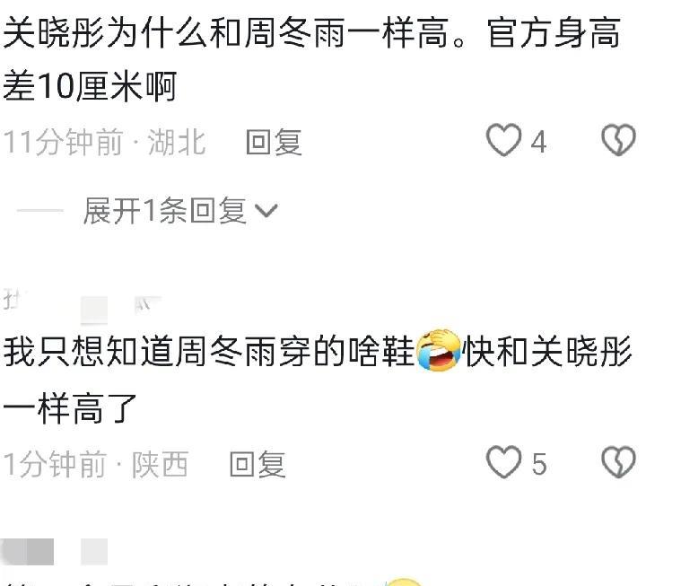 红毯上,身高162厘米的周冬雨居然比身高172厘米的关晓彤还要高一点,网友们看到