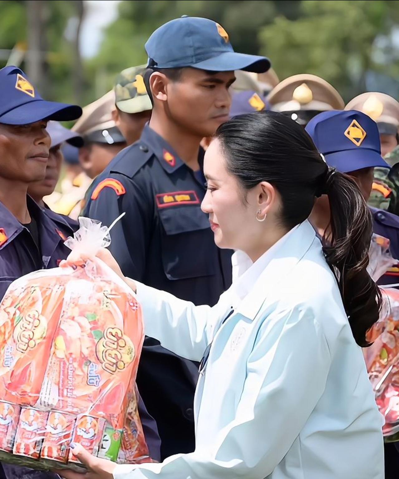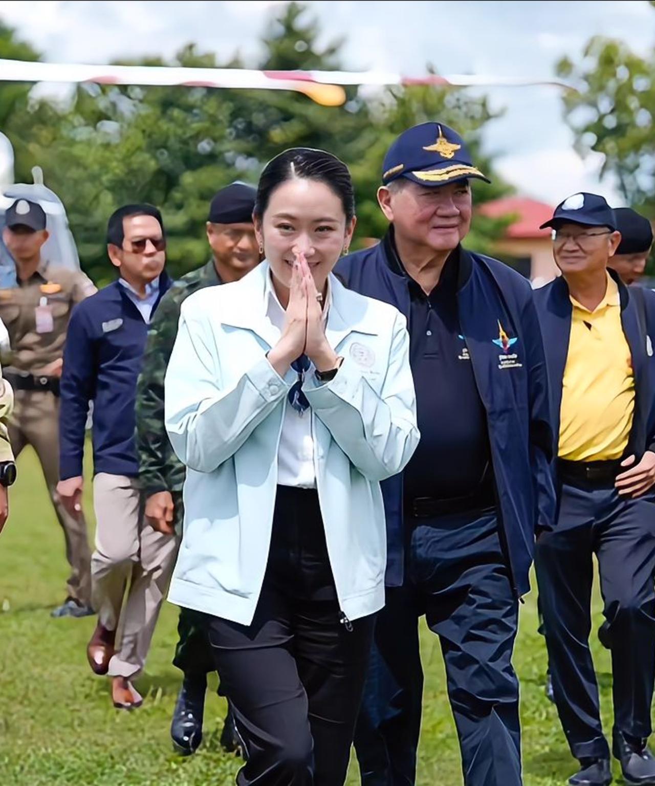 佩通坦淡妆好漂亮,温婉动人笑靥如花 2025年6月20日,泰国总理佩通坦于政府大楼Thai Khu Fah大楼绿屋主持会议,监测泰边境省份民众援助情况。